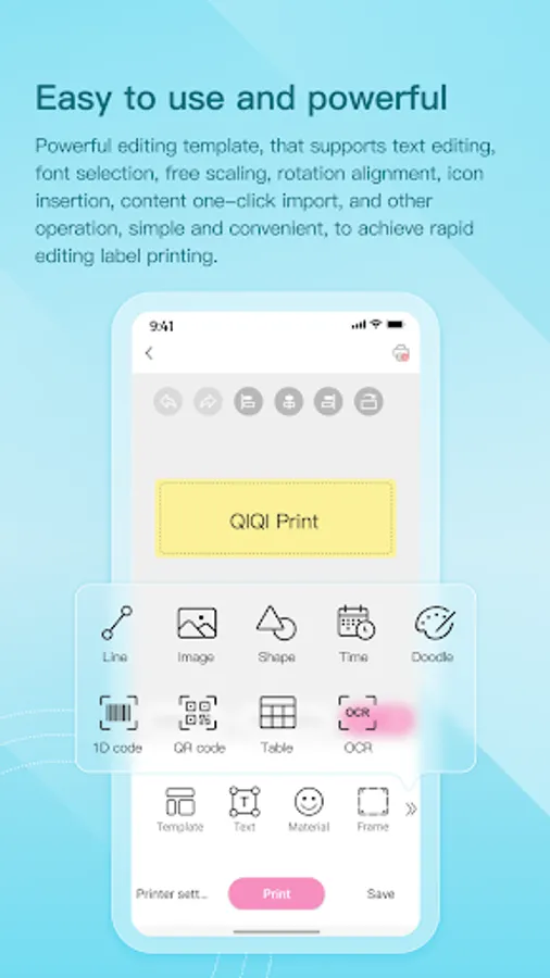 【Various Elements】Including text, images, icons, graffiti, borders, barcodes, QR codes, time, shapes, lines, OCR, etc., making the editing process more free;