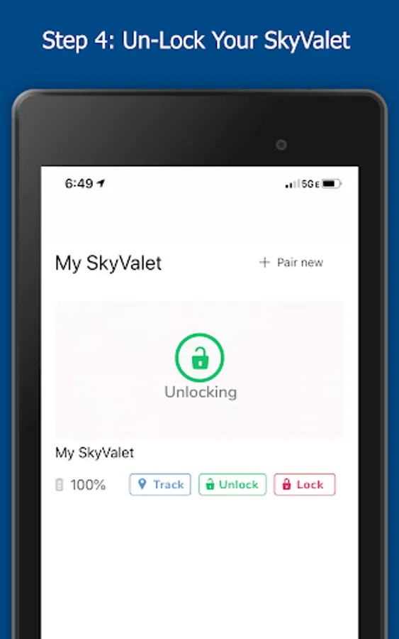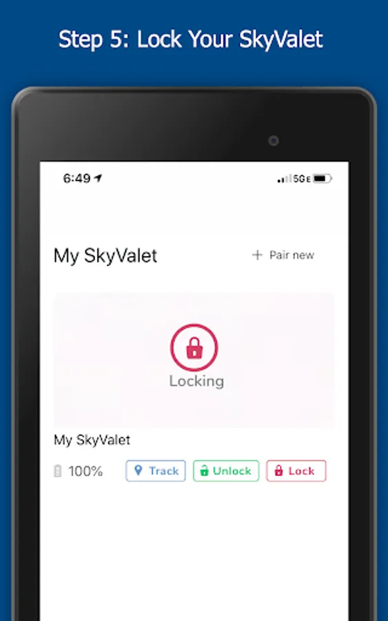 The SkyValet app will allow you to Lock and Unlock your suitcase via the Bluetooth App.