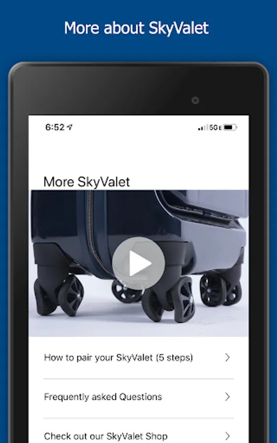 SkyValet is the newest smart connected suitcase offering unique and patented features for the modern traveler. If you have any questions, please email: App@SkyValetLuggage.com