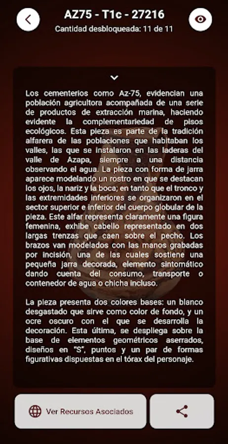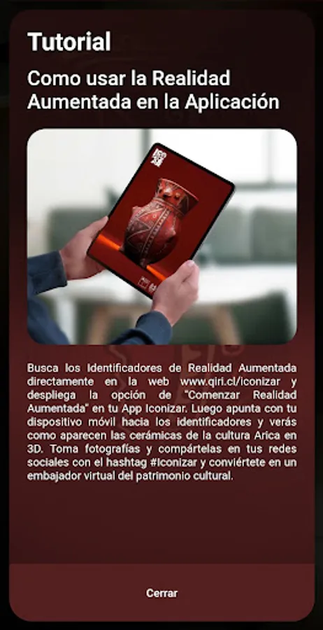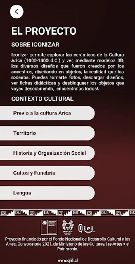 Iconizar allows you to explore the ceramics of the Arica Culture (1000-1400 AD) and see, through 3D models, the various designs that were created by the ancestors, designing objects, the reality that surrounded them. You can take photos, download designs, see didactic sheets and unlock the objects that you discover, find them all!