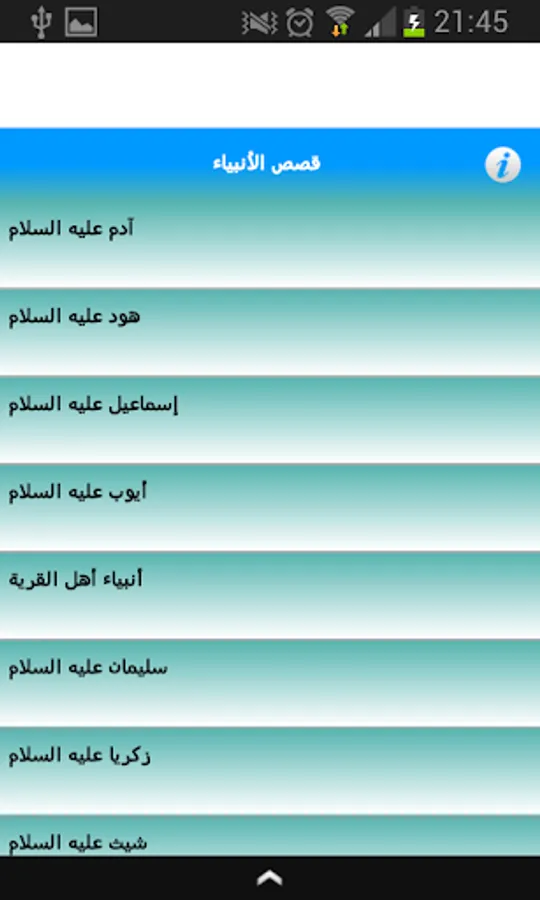 This program is the best way to read all the stories of the prophets and apostles full voice and image on them peace, so in a coordinated manner and stylish, also presents you all the Koran stories without Internet in a professional manner for you to identify the profiles of the life and miracles of the Prophet Muhammad, peace be upon him and Post an to the commandments of the Prophet and the story of the Antichrist and as well as a complete biography of the Prophet without Internet in addition to the miracles of all the prophets.