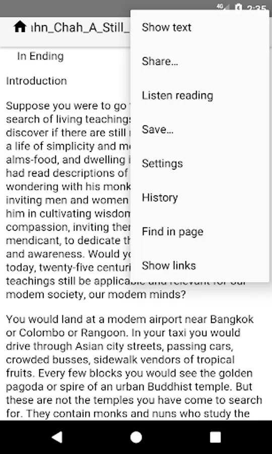 Extension of Google Chrome. When you use Chrome to read a web page with small font or you have to scroll screen left and right to read text lines, you can switch the view to WebReader by tapping Share command on Chrome's menu. WebReader will extract the web page's main content and show the content as plain text with wrapped lines fitting a small screen.