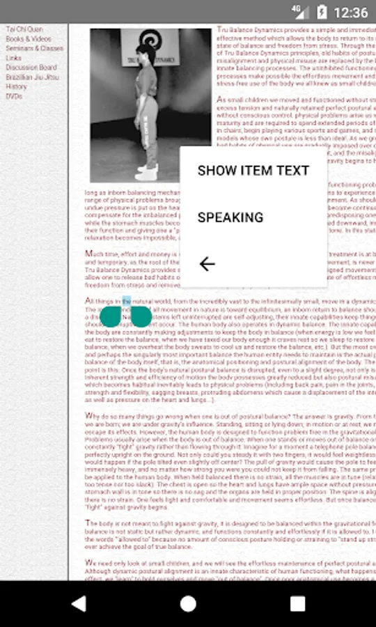 Read aloud from any position. If you want to hear WebReader's reading not starting from article's beginning, you can select the text at start position and tap READ ALOUD command in the context menu. WebReader will start read aloud from the specified position.