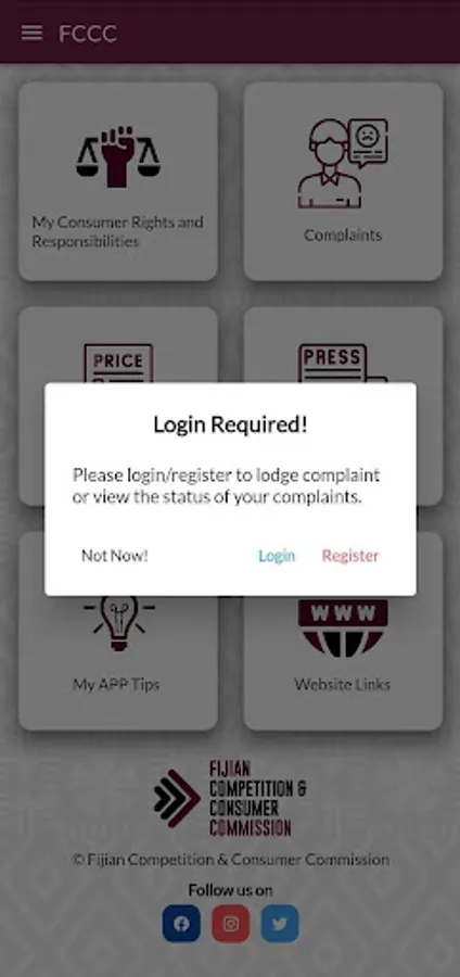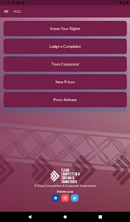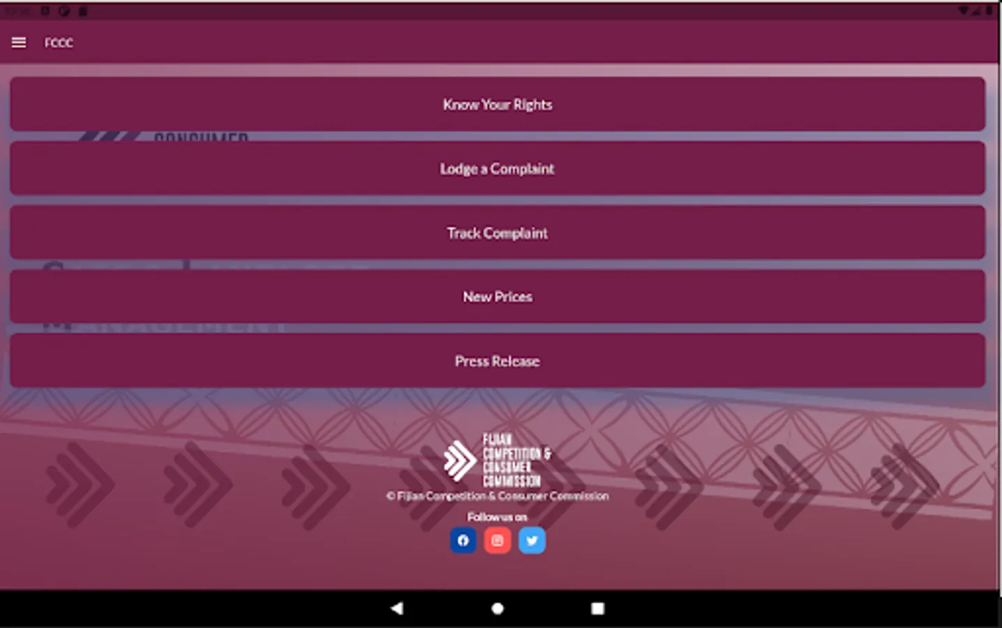 This app allows Fijian Consumers to lodge and track their complaints with FCCC, access monthly fuel and LPG prices, valuable information on consumer rights and FCCC's press releases.