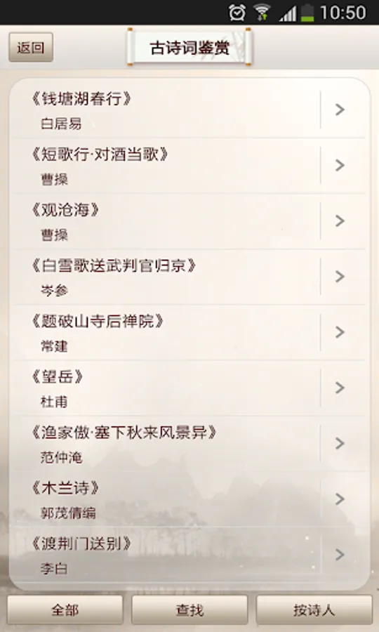 Appreciation of ancient poetry, poetry collection and a number of dynasties of Yuan Dynasty classical fashion theme, including the ten thousand ancient works, this application permanently free, is the choice for millions of users are welcome to use.
