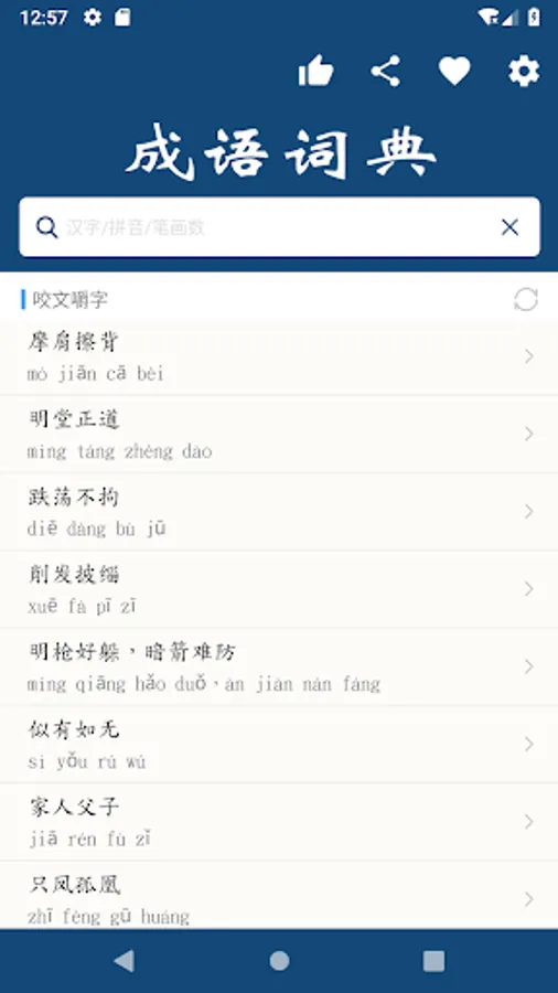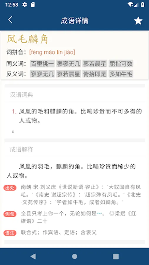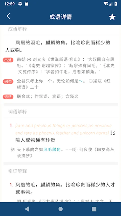 The idiom dictionary is completely offline, and contains more than 50,000 idioms, including interpretations, sources, and examples of idioms. At the same time, more than a thousand idiom stories were included.