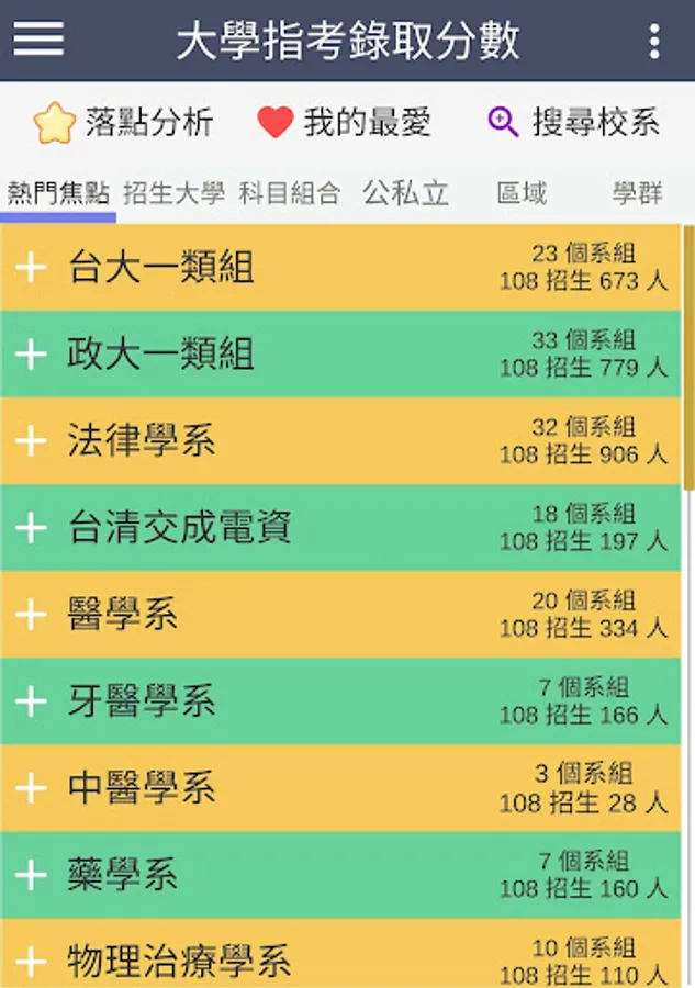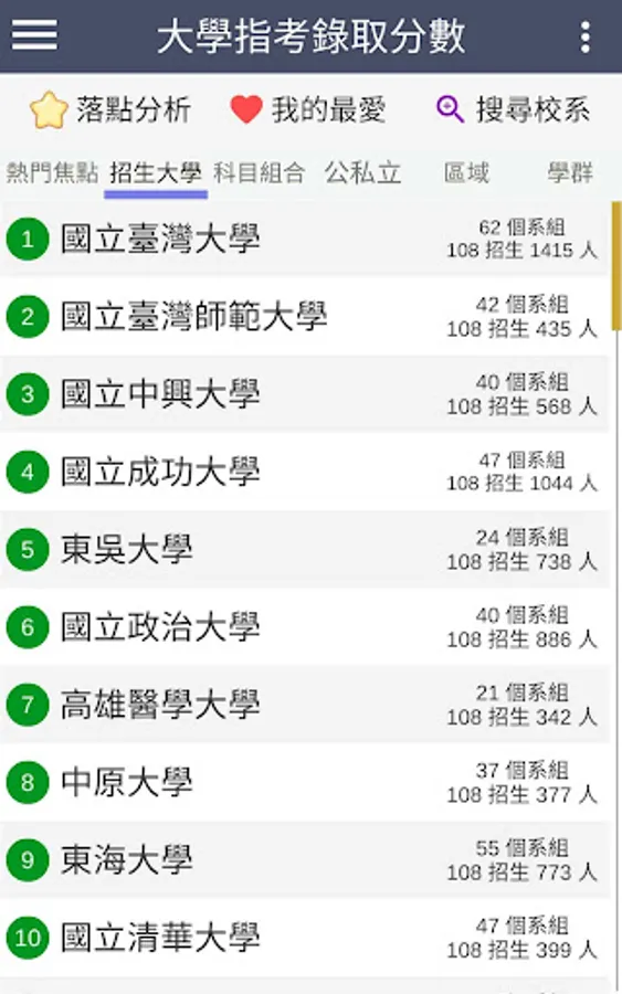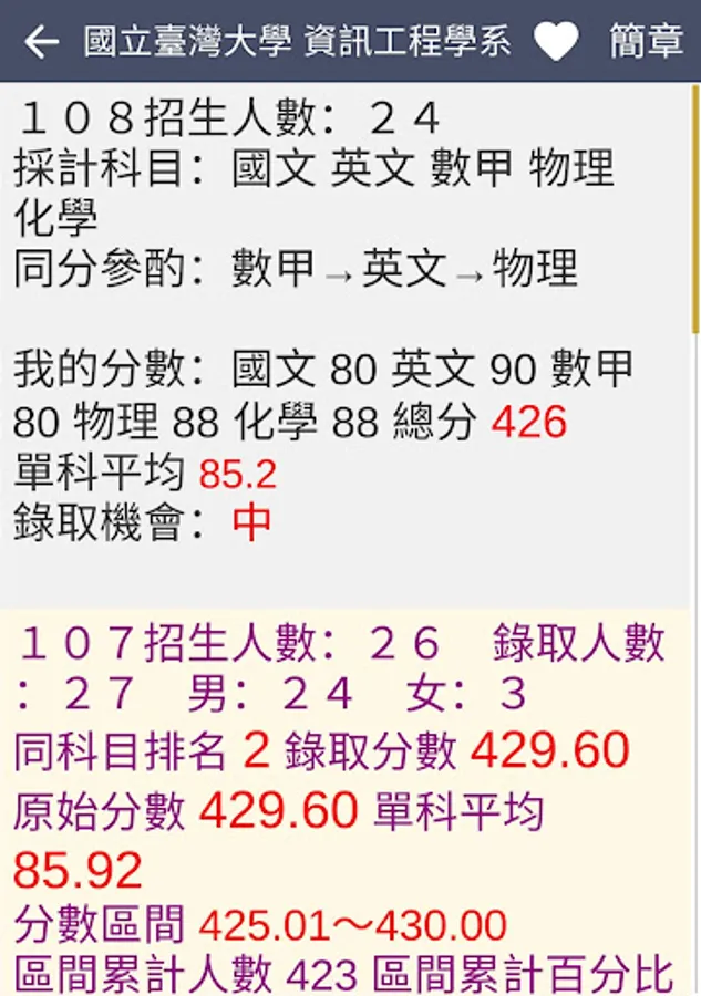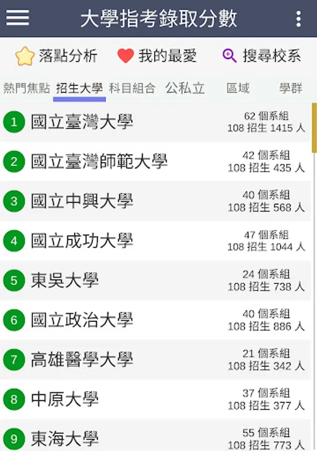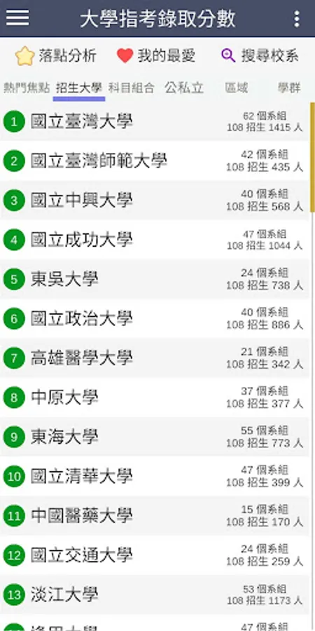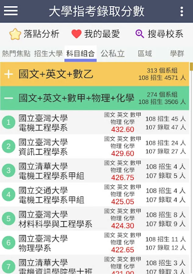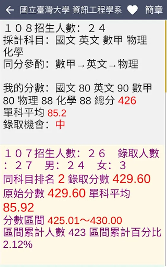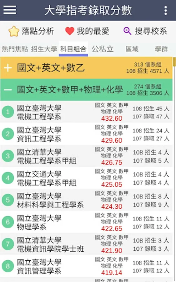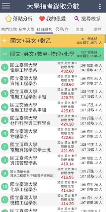 ・The latest information: 109 refers to the release of the test (2020/08/07), update the minimum admission scores and actual number of admissions for each school department group