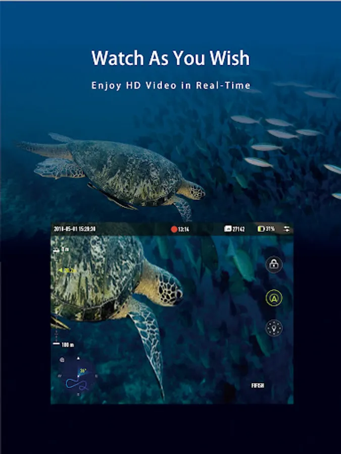 Equipped with Ambarella chipset, 1-Inch SONY CMOS Sensor and 162 FOV ultra-wide angle lens. FIFISH could capture 4K HD footage & 20-Megapixel photos in underwater environment. With working depth up to 100 meters, FIFISH can be easily and accurately controlled.