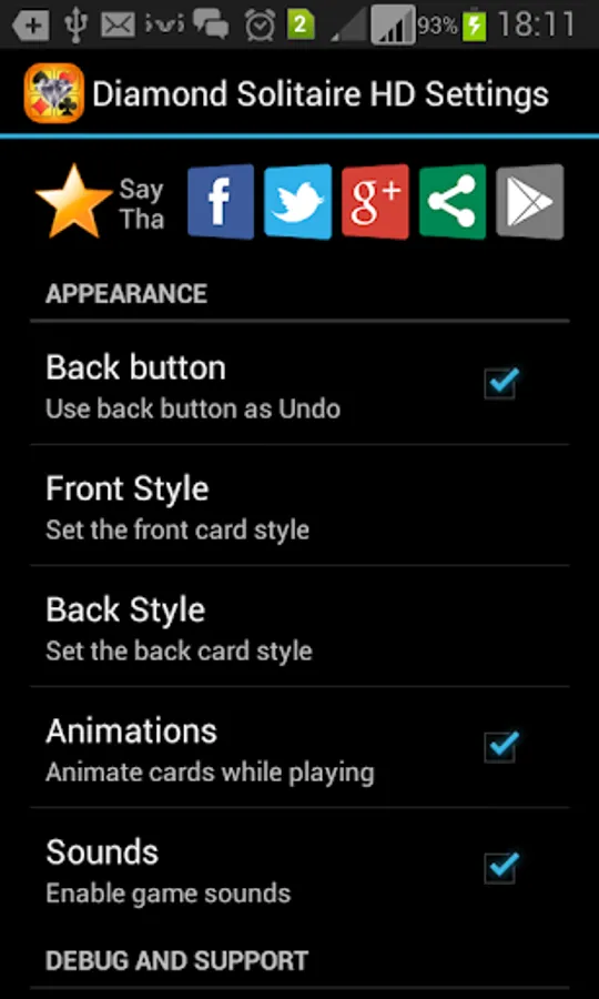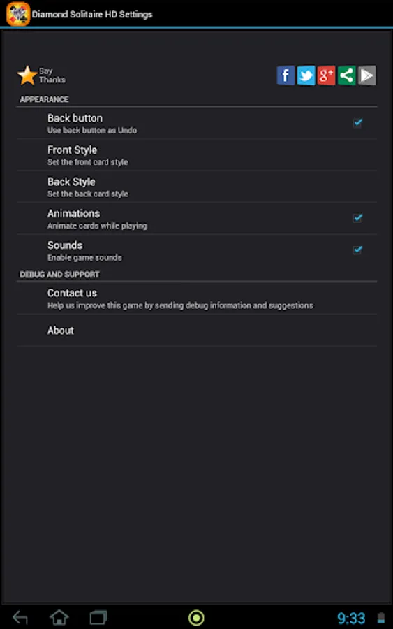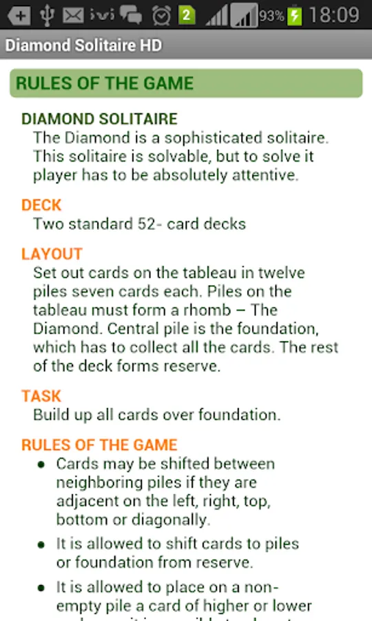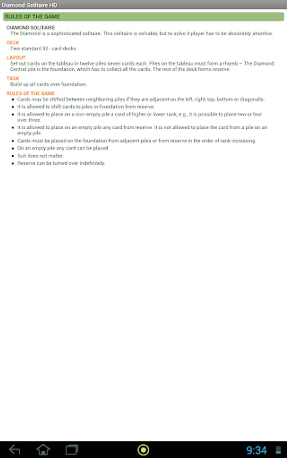 Diamond Solitaire is designed specially for Android and provides many customization options. Choose the most suitable cardset(for phones or for tablet), background colors!