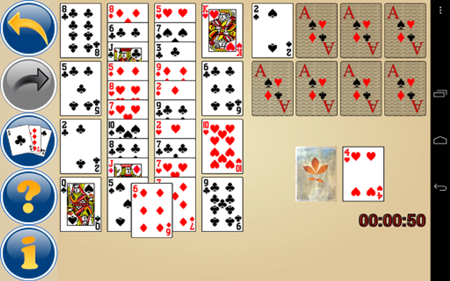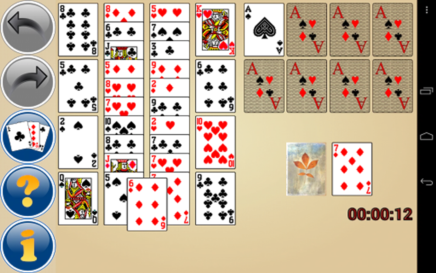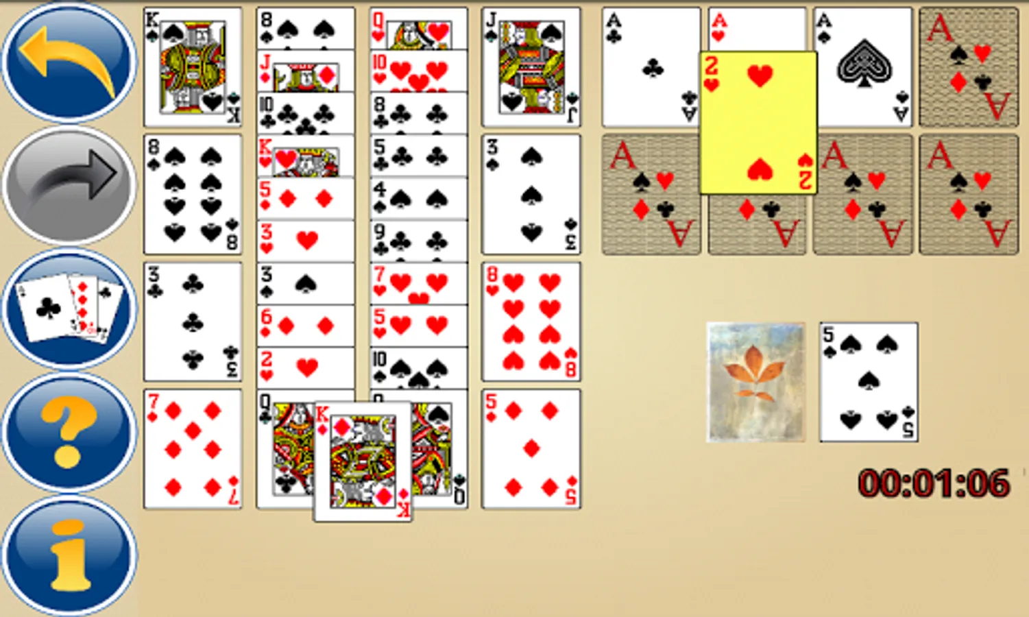 Your aim is to sort out two card decks into eight blocks by suit and rank, in ascending order, starting from the Ace and finishing with the King.