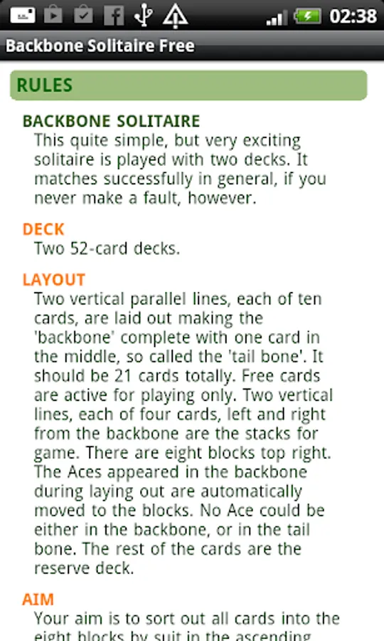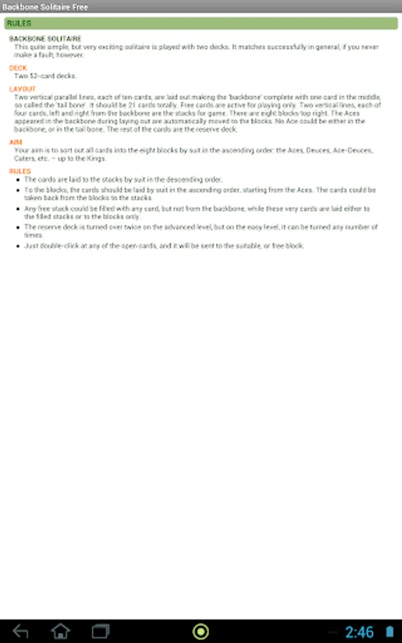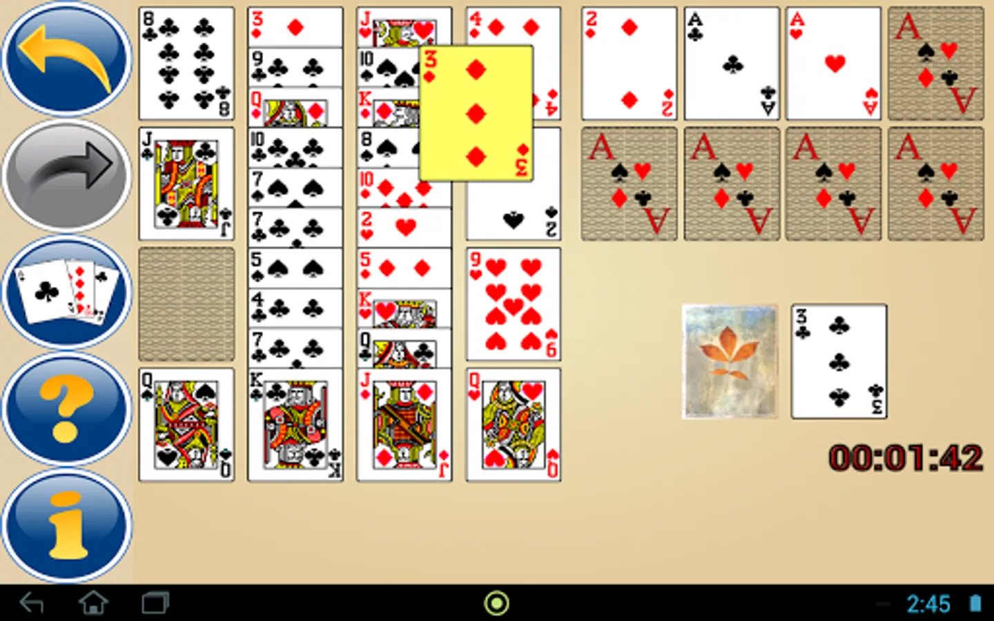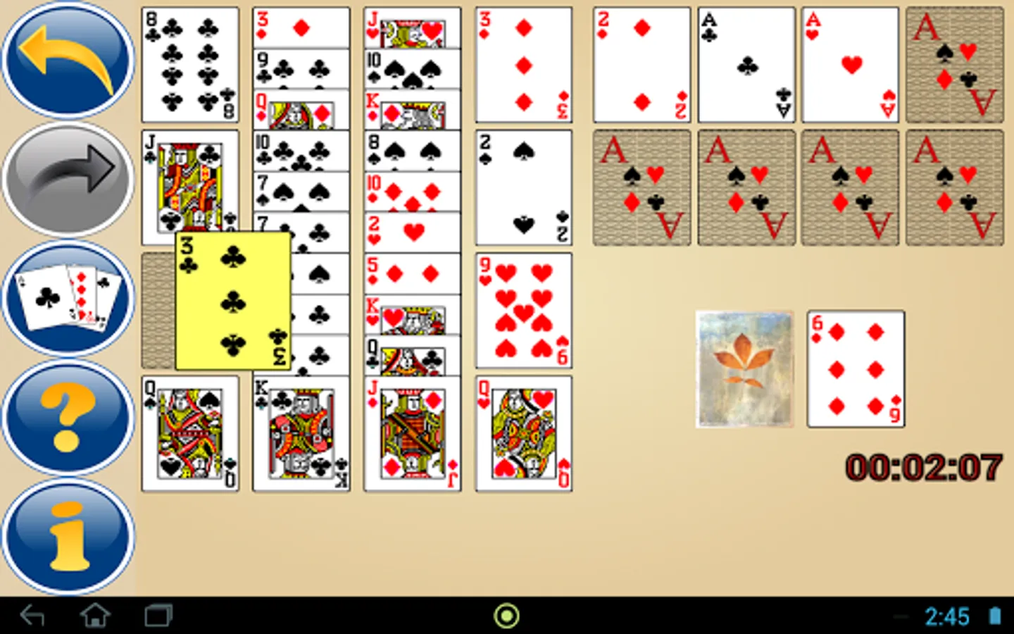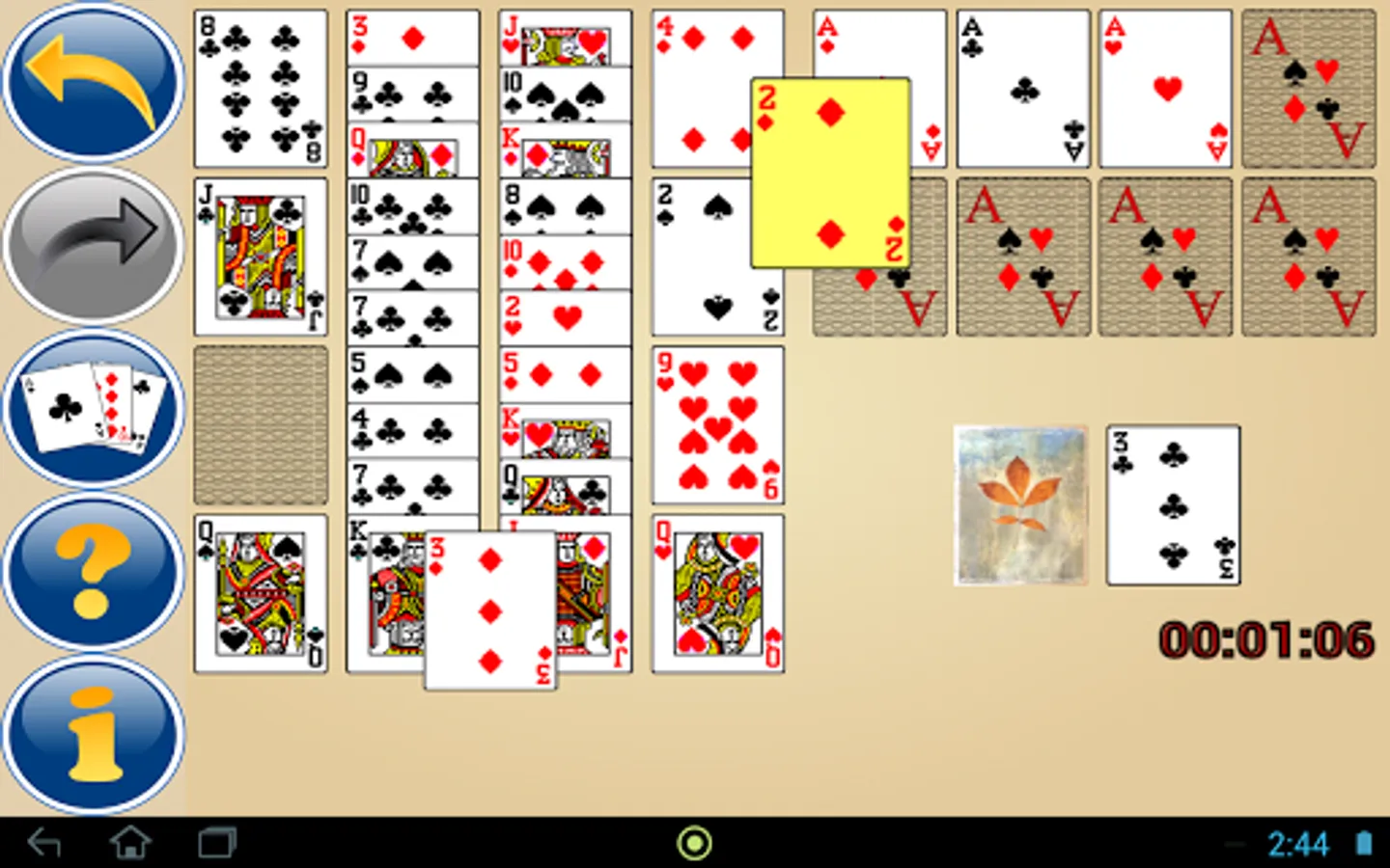 Your aim is to sort out two card decks into eight blocks by suit and rank, in ascending order, starting from the Ace and finishing with the King.