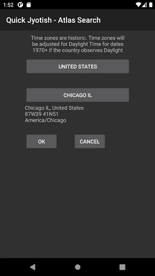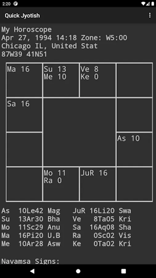 Quick Jyotish is a basic Vedic Astrology program. Both north and south style charts are available. Now includes a searchable atlas with cities population 15,000 or more and date sensitive time zones.