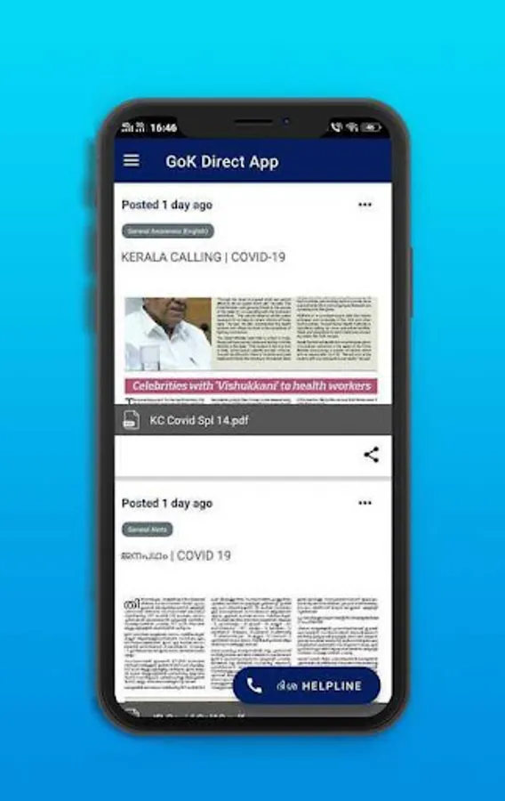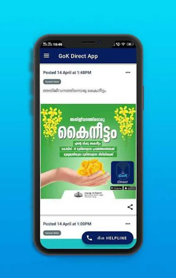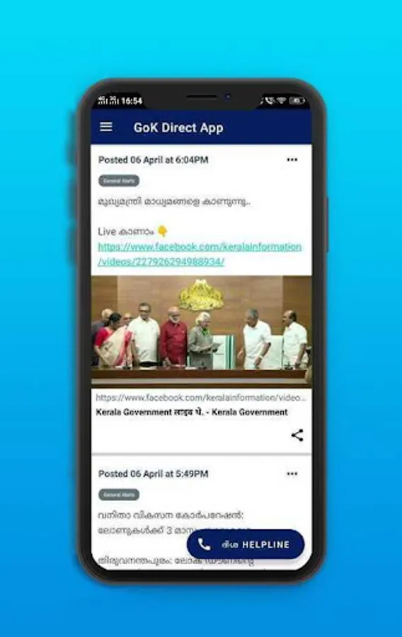 2. Queue, the Timeline- Latest notification is shown as feeds from GoK - Direct Kerala