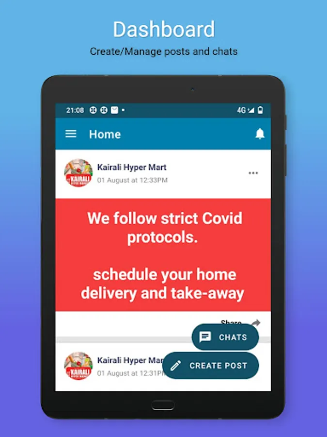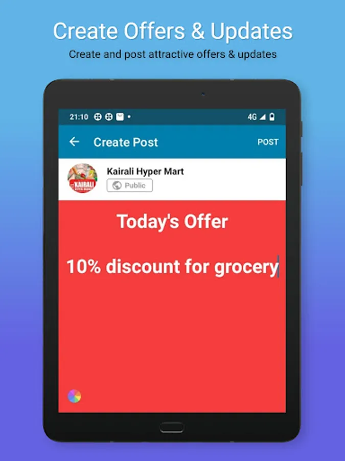 Manager app helps to create coupons, updating products, post text, images to your personalized Nearwala Shop