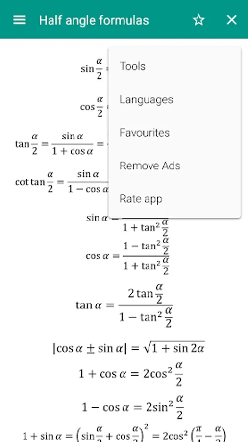 This app also has many tools to calculate the geometric shapes or find the roots of equations. Users can also share any formulas with friends by many ways: email, message, facebook ......So we hope this math formula app will help you to learn math or study math or know math formula easily.