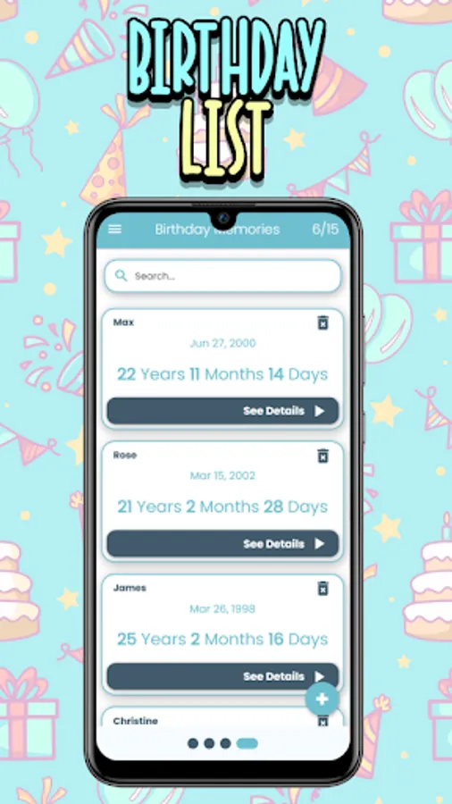 The function of saving important dates to a personalized list is a standout feature of Age Calculator - Date of Birth. You can easily add birthdays, anniversaries, or special holidays to your list and access it quickly at any time. Additionally, the search function allows you to find specific individuals within your list, making it easier to locate specific information.