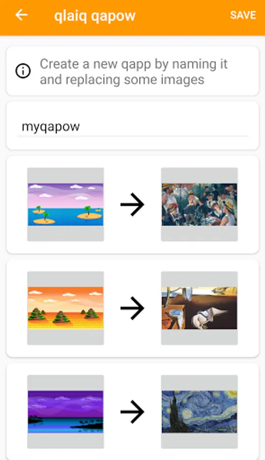 A fun app with YOUR pics! To replace standard app components with your own pics you'll need qlaiq: personalize apps and share — https://play.google.com/store/apps/details?id=app.qlaiq