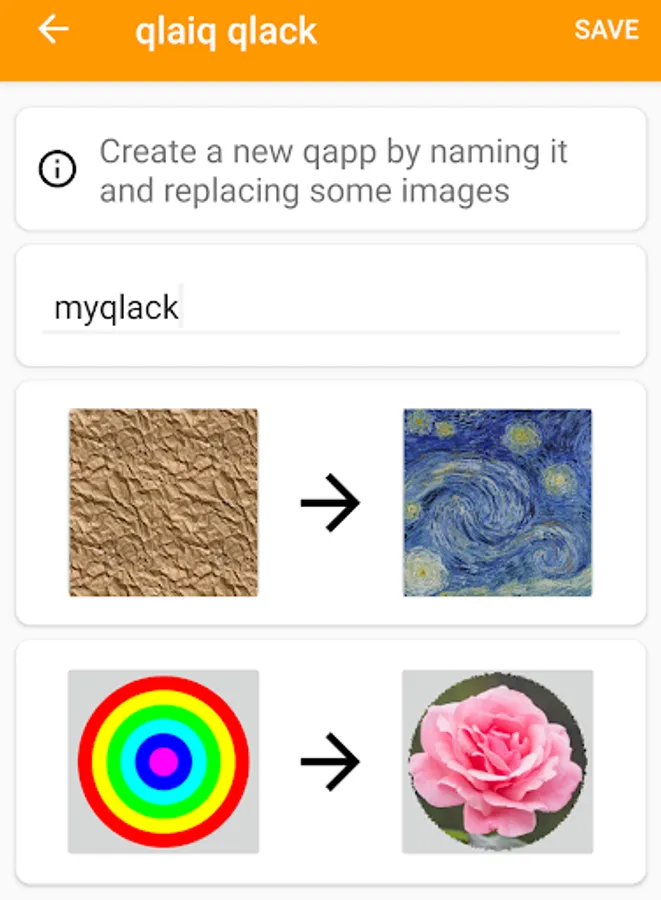 A fun app with YOUR pics! To replace standard app components with your own pics you'll need qlaiq: personalize apps and share — https://play.google.com/store/apps/details?id=app.qlaiq