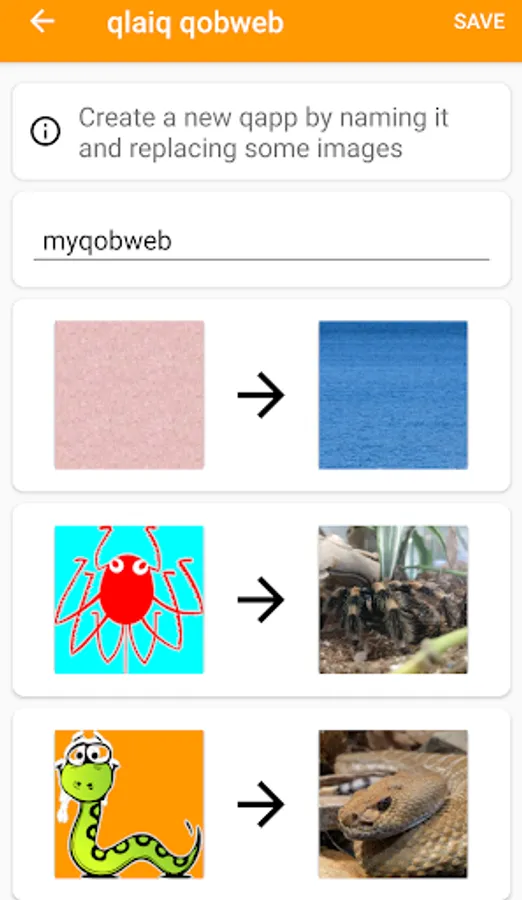 A fun app with YOUR pics! To replace standard app components with your own pics you'll need qlaiq: personalize apps and share — https://play.google.com/store/apps/details?id=app.qlaiq