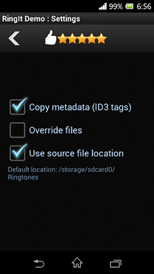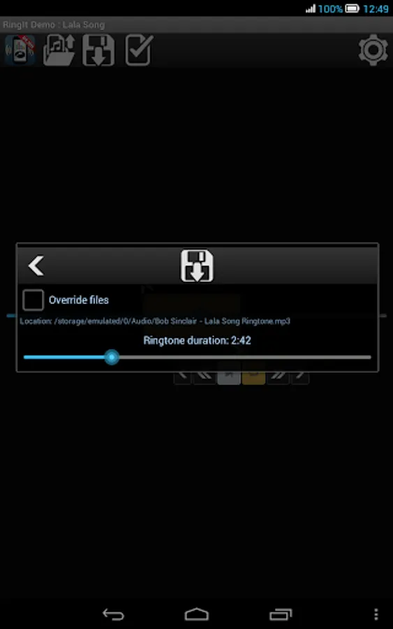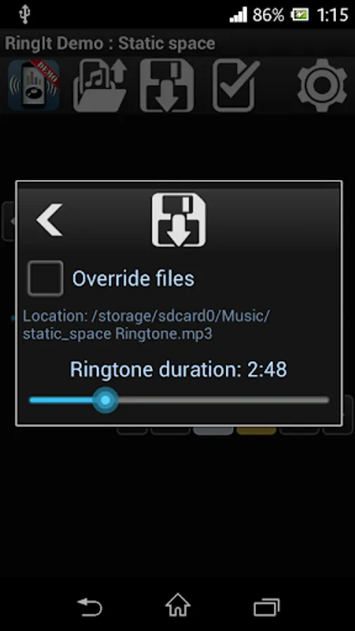 Ringit simplifies ringtone creation process on smartphones and tablets. Cut and loop audio files by your finger! Live preview is available all the time. Ringtones can be saved or set as default incoming call sound.