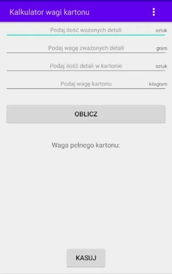 Kalkulator wagi kartonu Screenshots