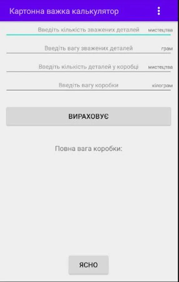 Calculator for calculating the weight of cartons after filling it with the required number of details