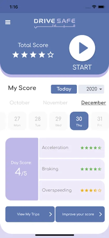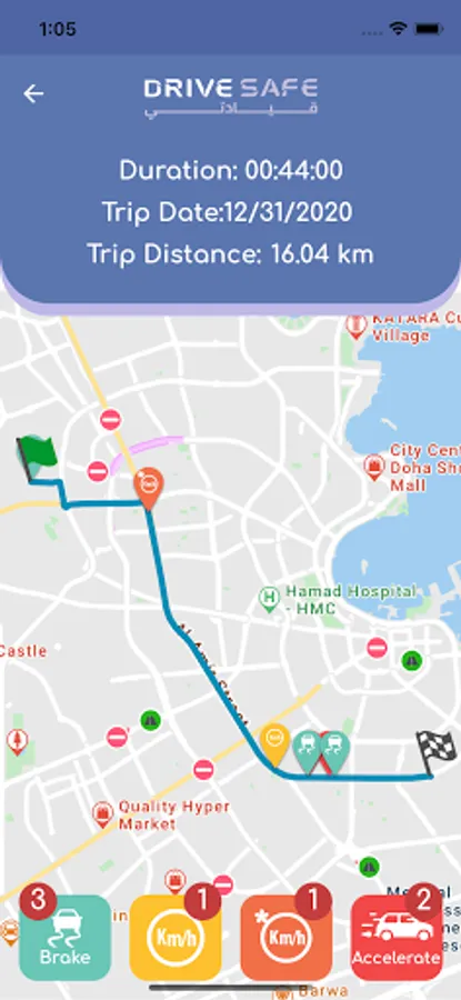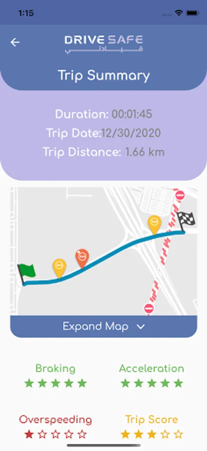 “DriveSafe” mobile app which will allow users to assess and improve their driving performance through a user friendly interface which is optimized for local and regional markets, the application will allow users to monitor their own driving behavior and score, share their results, and compete with other drivers for the safest driver ranking.