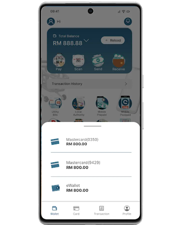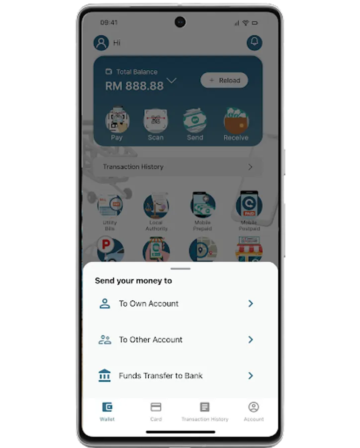 The Pay Bills feature is ready for Domestic Utility Bill Payments, Telco Prepaid/ Postpaid, Insurance & Road Tax Renewal, Council Bill, International Utility Bill Payments, International Reloads, Content Subscriptions, Gaming Points such as Gerena, TNB, Unifi, Astro, Maxis, Digi (Prepaid & Postpaid), PTPTN etc.k