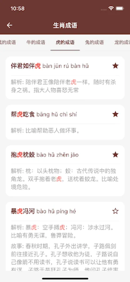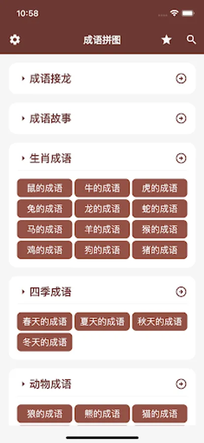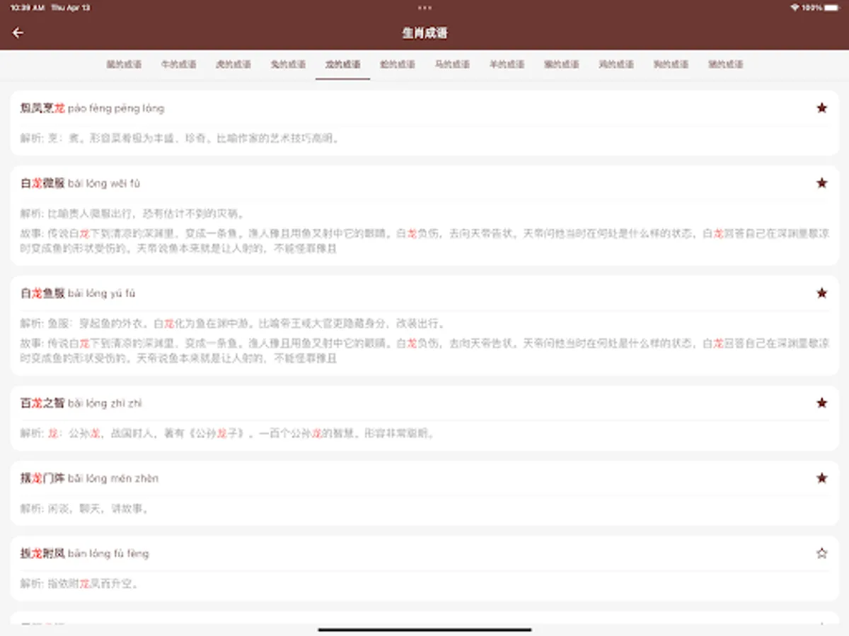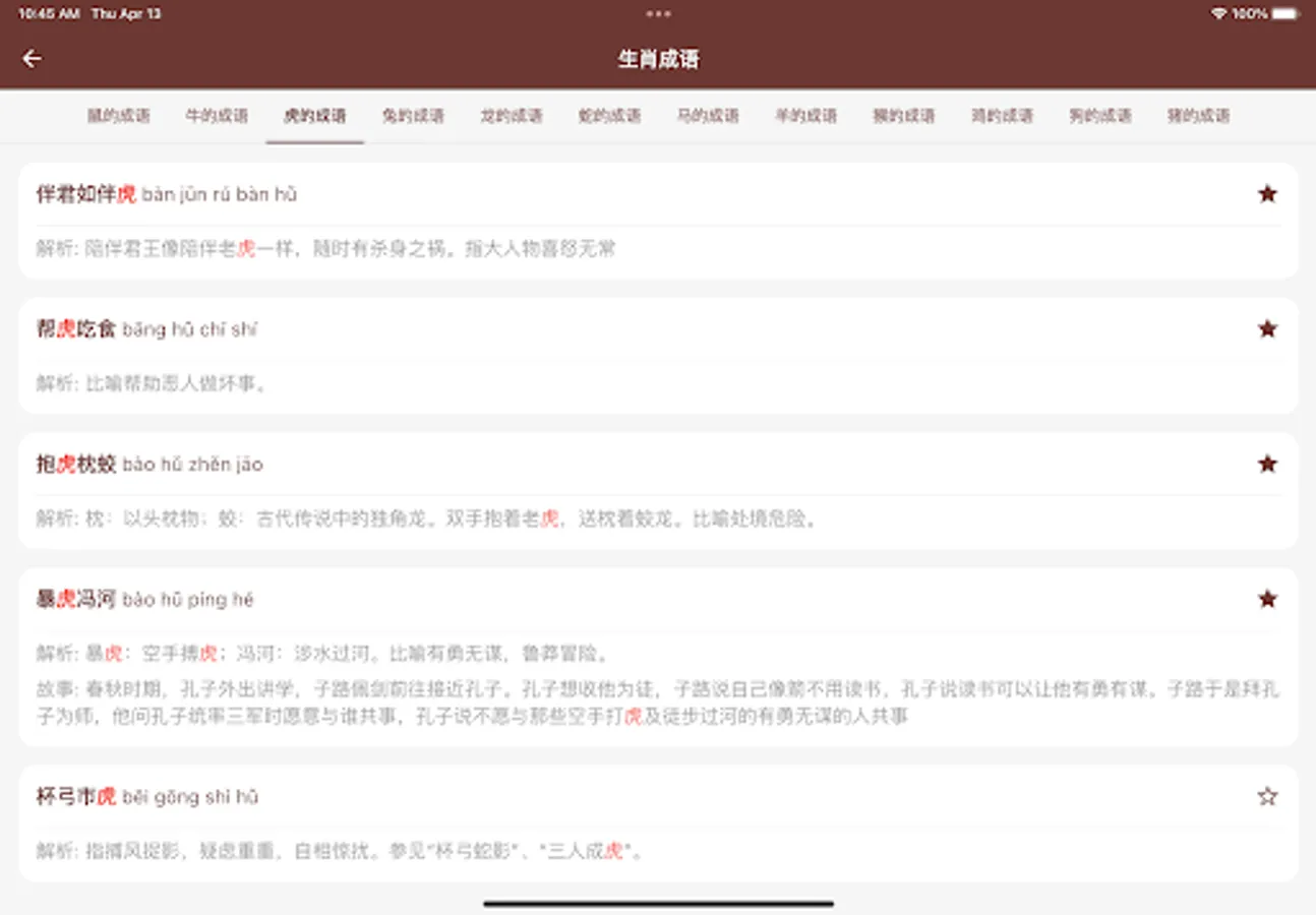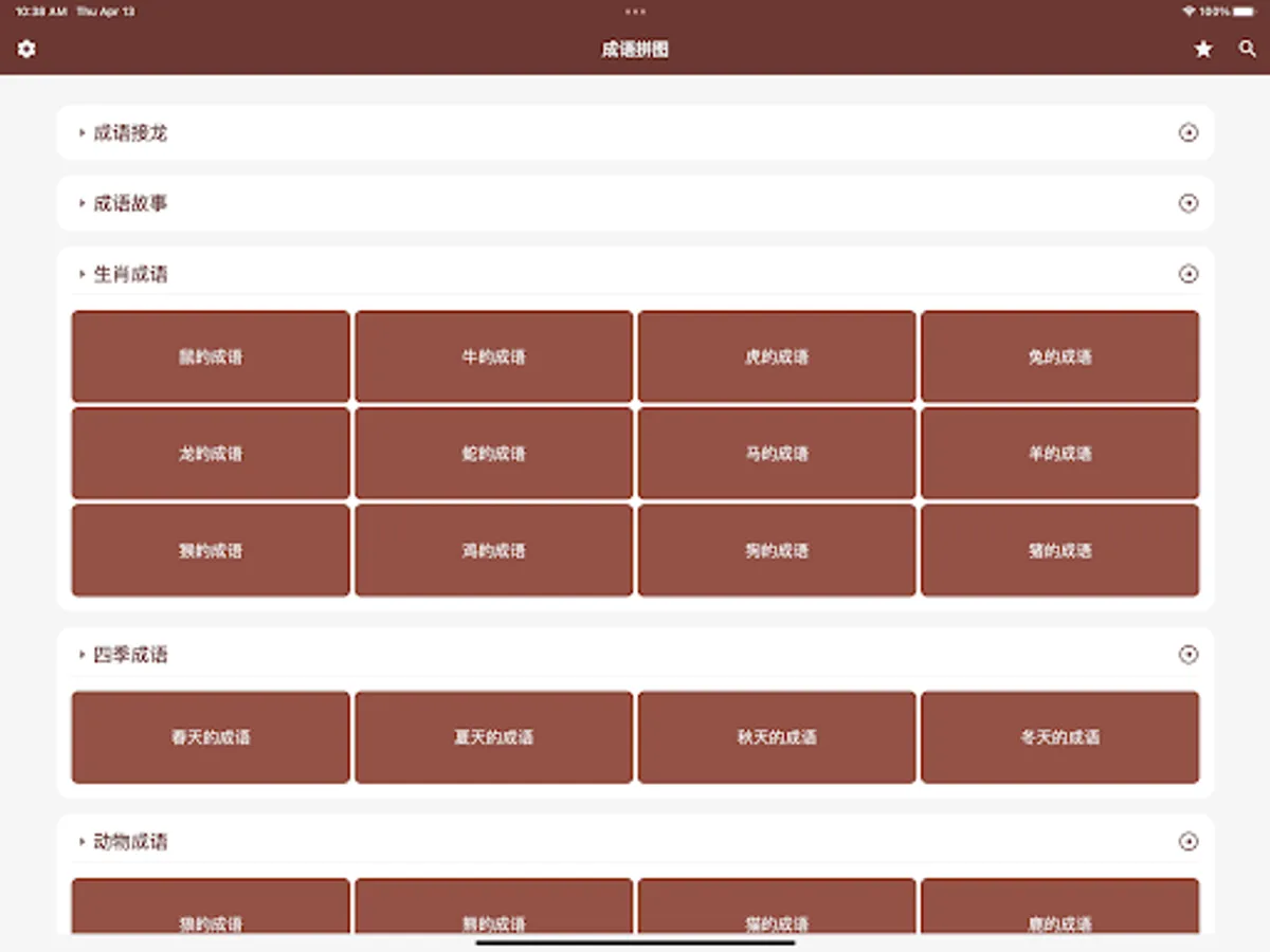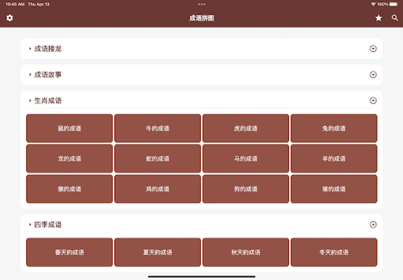 The idiom app contains a variety of idiom learning modules, such as idiom Solitaire, idiom stories, zodiac idioms, four seasons idioms, animal idioms, number idioms, etc.