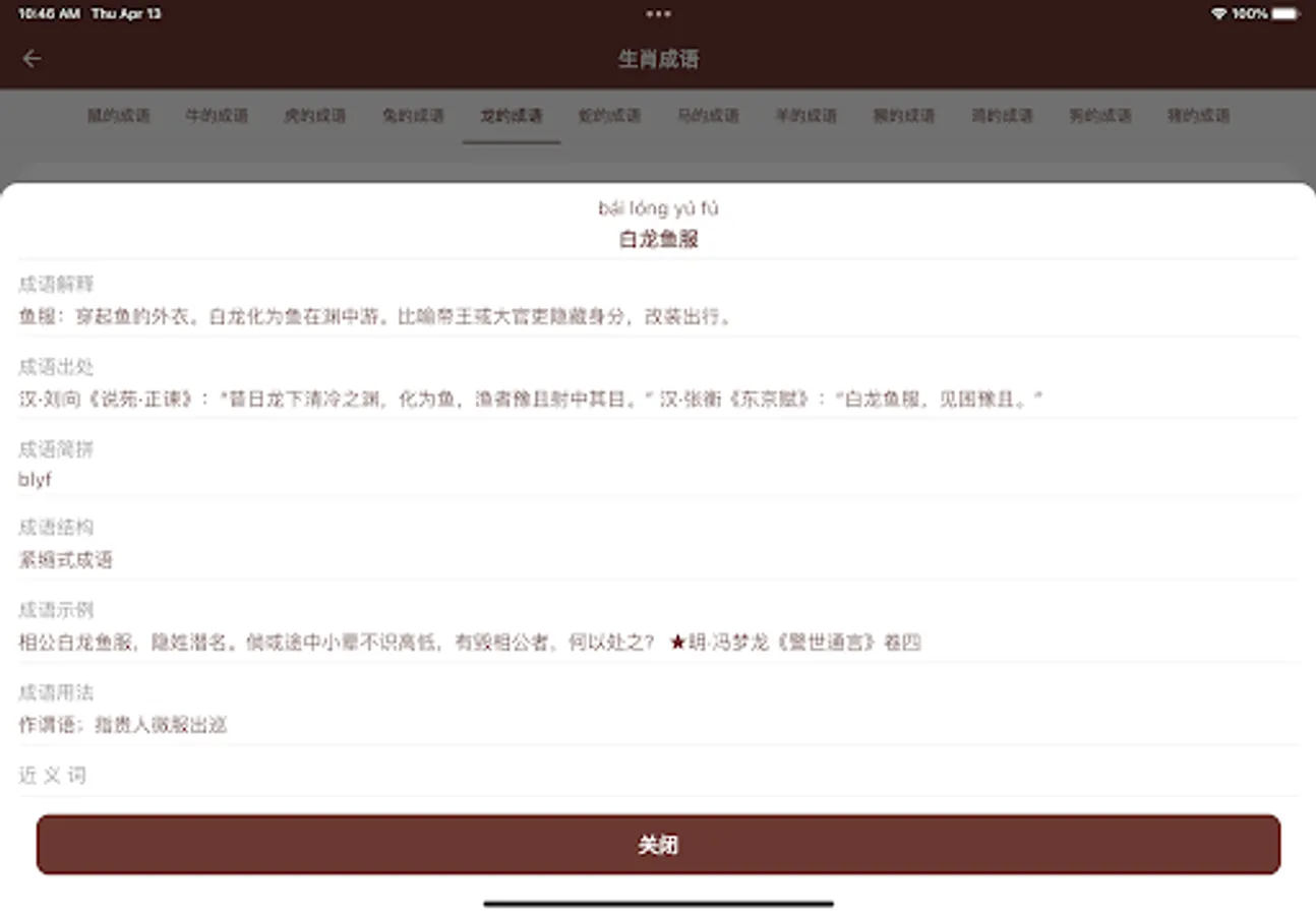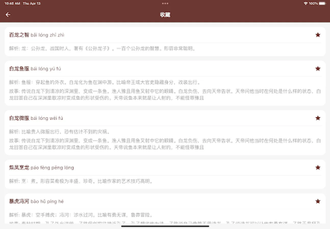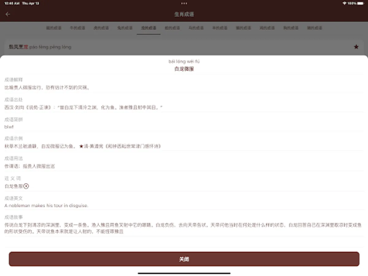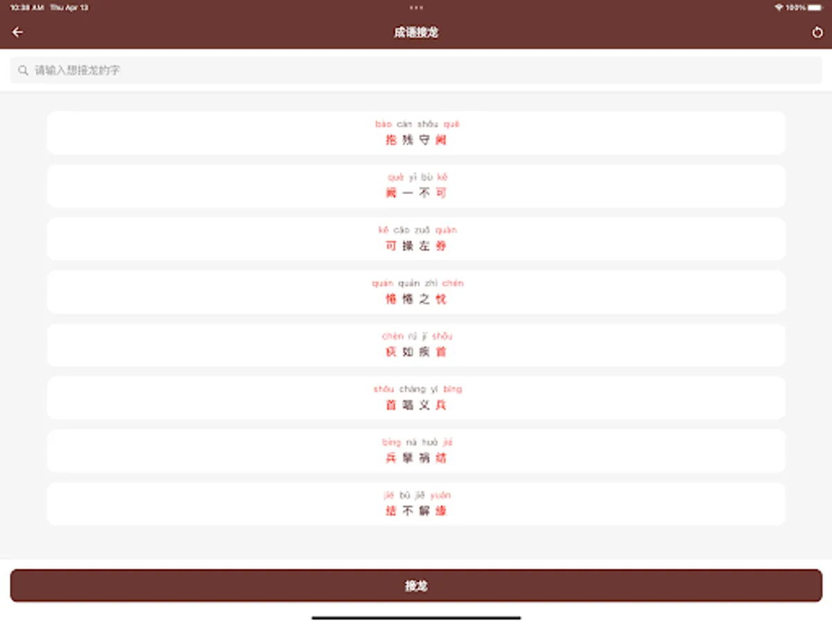 Idioms are a unique way of expression in Chinese and an important part of our national culture. In order to facilitate everyone to learn, memorize and use idioms, an idiom App was developed.