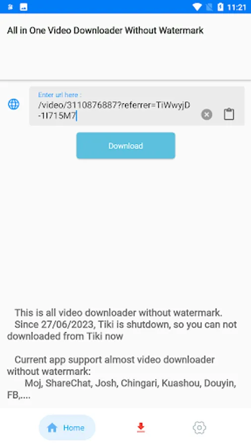 🏆 Goodbye Tiki, thank you for such a wonderful time together. See you again in the following days. The app has accomplished its mission and to take the next step forward, we've updated the app to be able to help you download videos from various sites besides one of our Tiki legends.