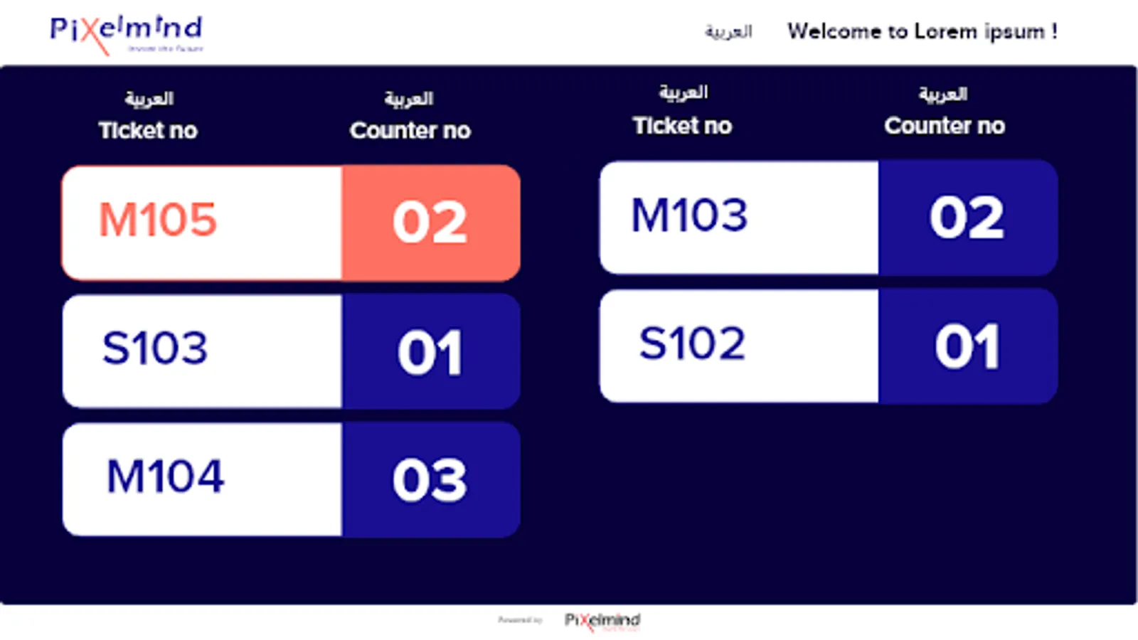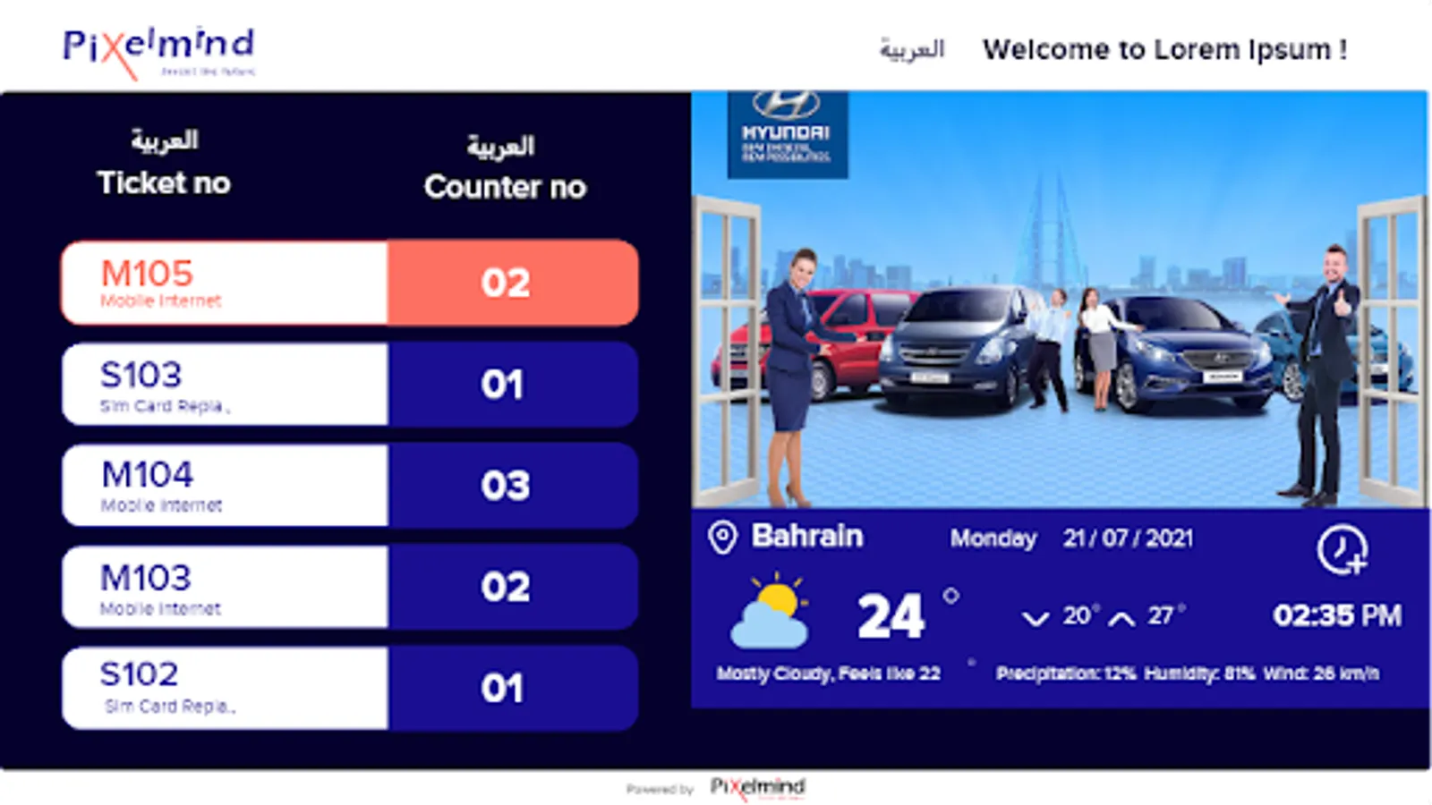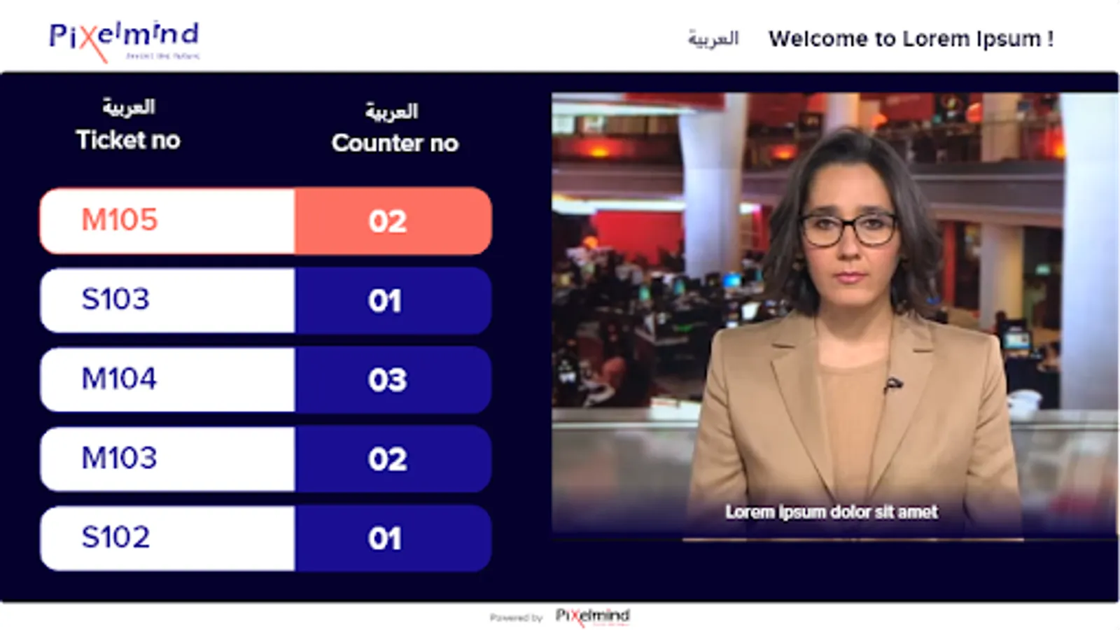 QFasto Screen allow the organization to present what been configured on the QFasto web; they can configure each screen separately to customize what to show like: Token numbers, Services, Live TV & Video, Weather, Advertising banner, special marque messages.