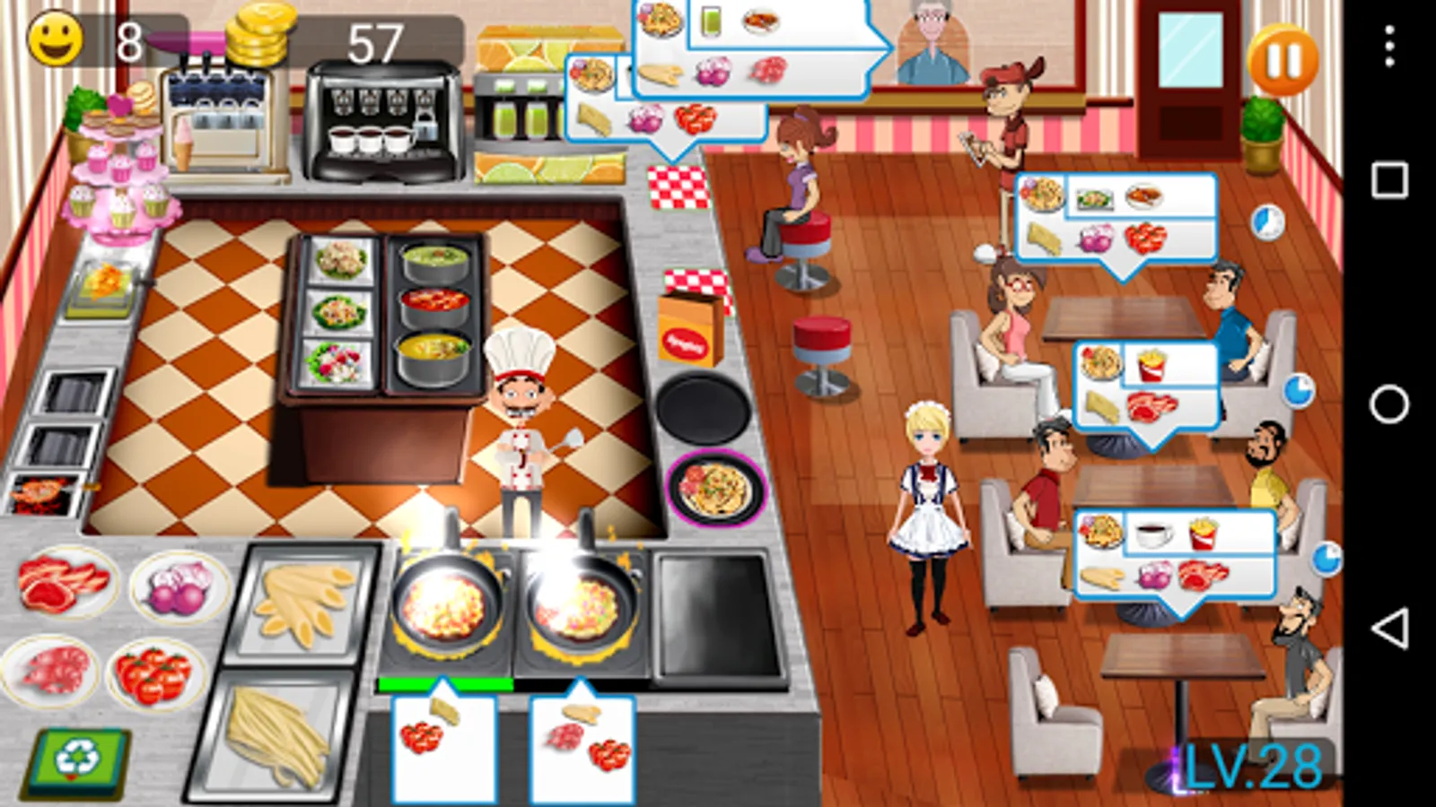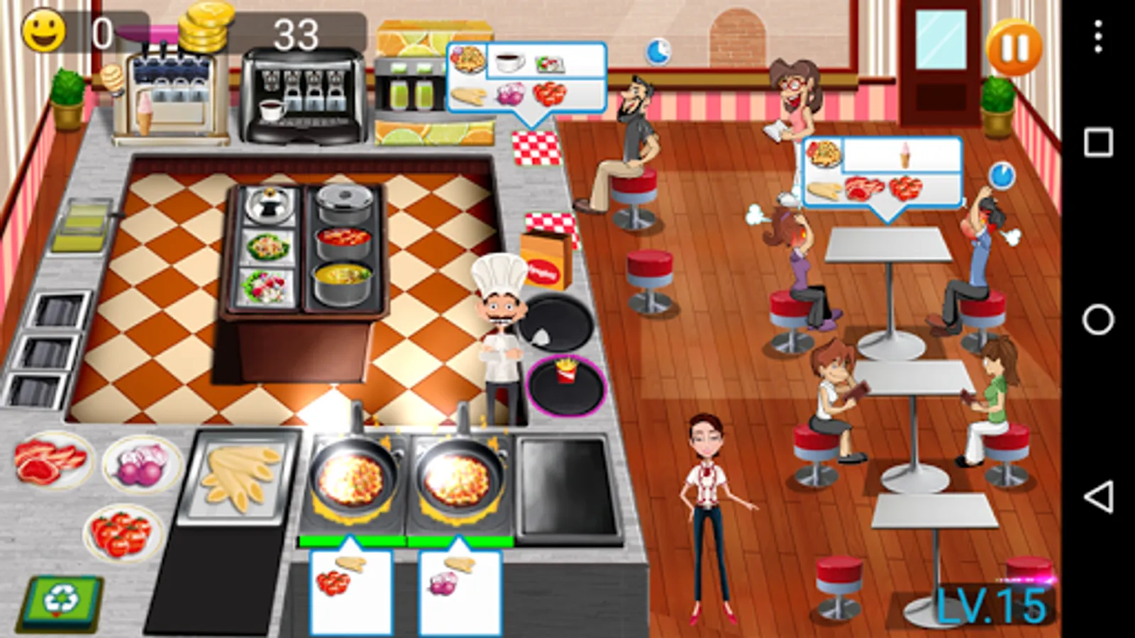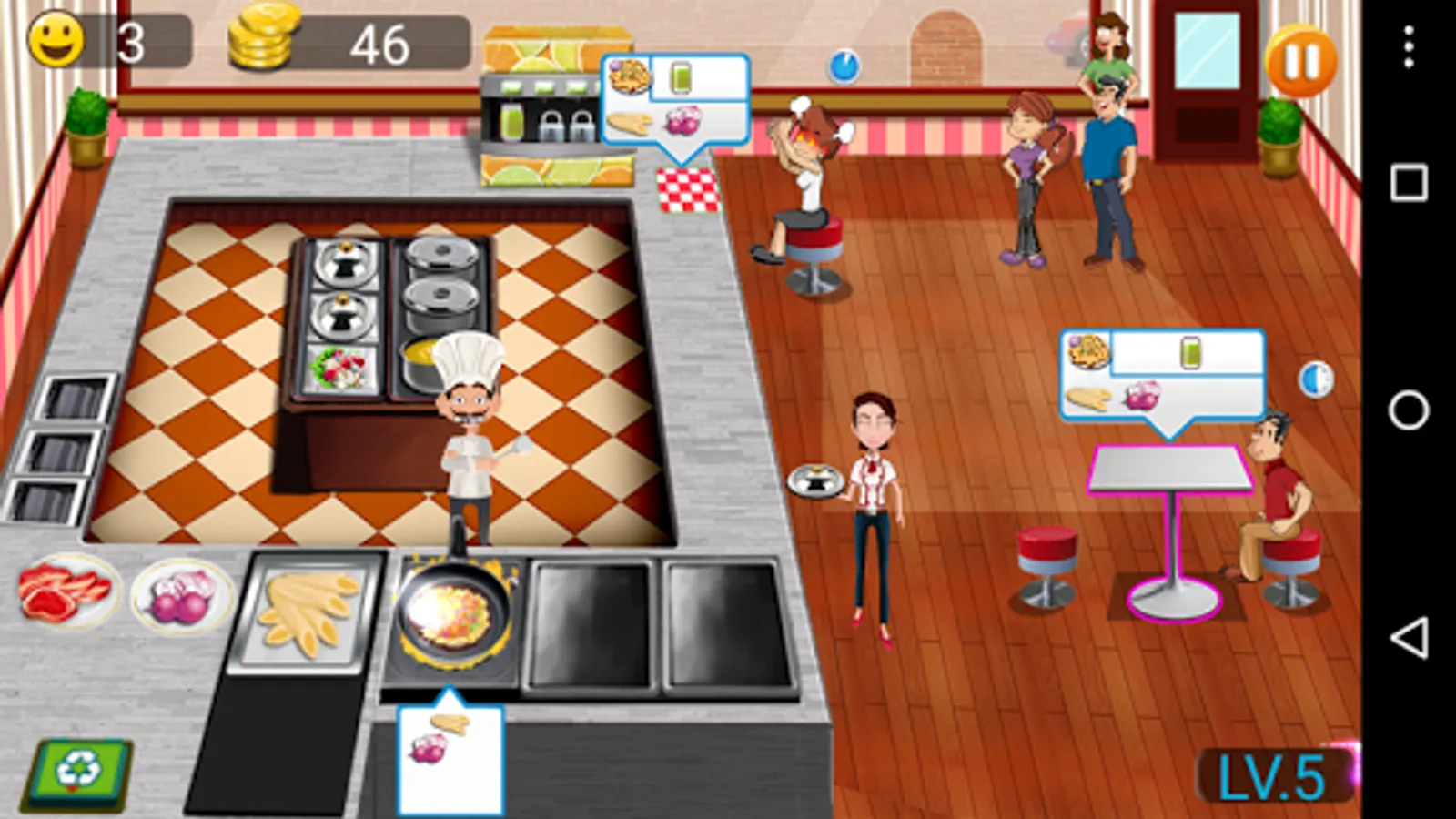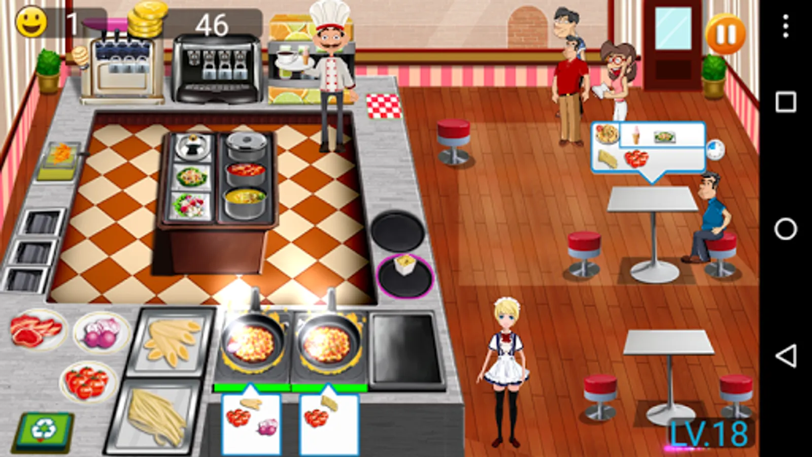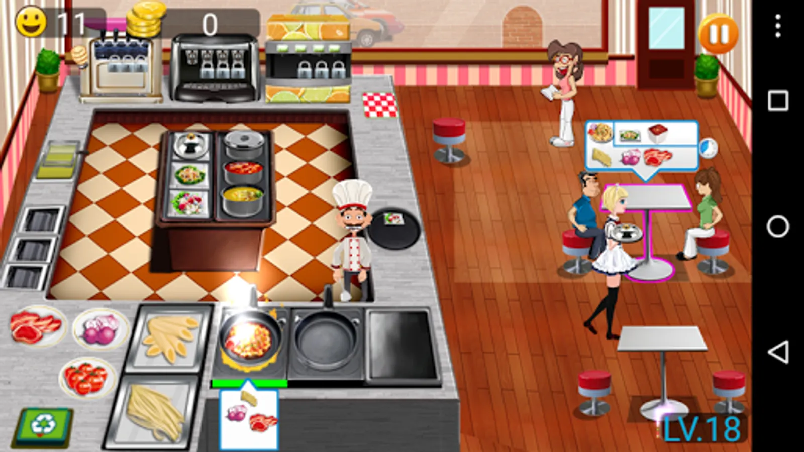 If you play well, you'll accumulate profit. You can go to the shop to upgrade your facilities to provide more varieties of food, accommodate more customers and prepare customers' order more quickly.