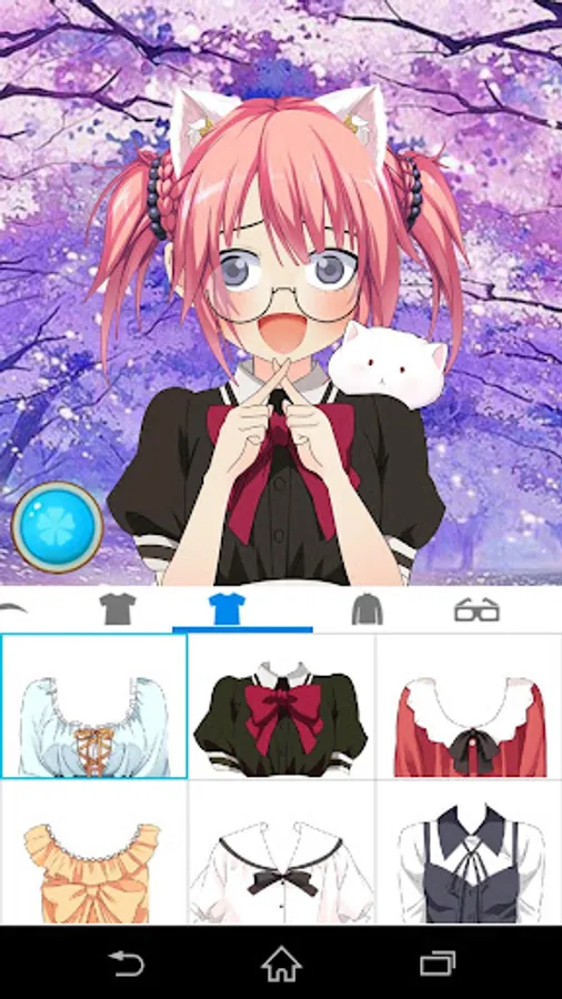 Wanna create a brand new pretty lolita character of your own, you've got the right choice. With this application, you can design lovely cartoon and anime avatar at your wish. There are rich collections of eyes and haircuts of your desired color, eyebrows, mouths, beautiful clothes, accessories, different poses of gestures, pets and background. Just under your fingertip, you can create your favorite lolita freely. Moreover, you can make these figures as wallpaper or share with your friends.