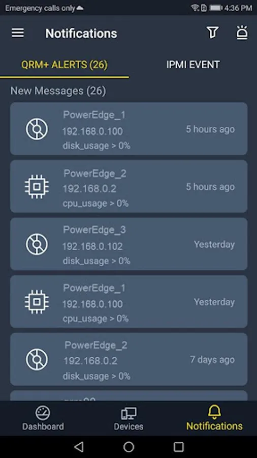 - Dashboards in QRM+ help users to visualize and monitor all of their connected devices and respective parameters.