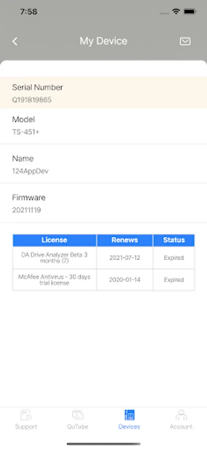 MyQNAP is designed mainly but not only for the purposes of marketing and customer service. Users are able to be notified of the latest news about QNAP, receive segmented promotional messages, pre-sale and after-sale knowledge. They are able to check the status of their devices and licenses.