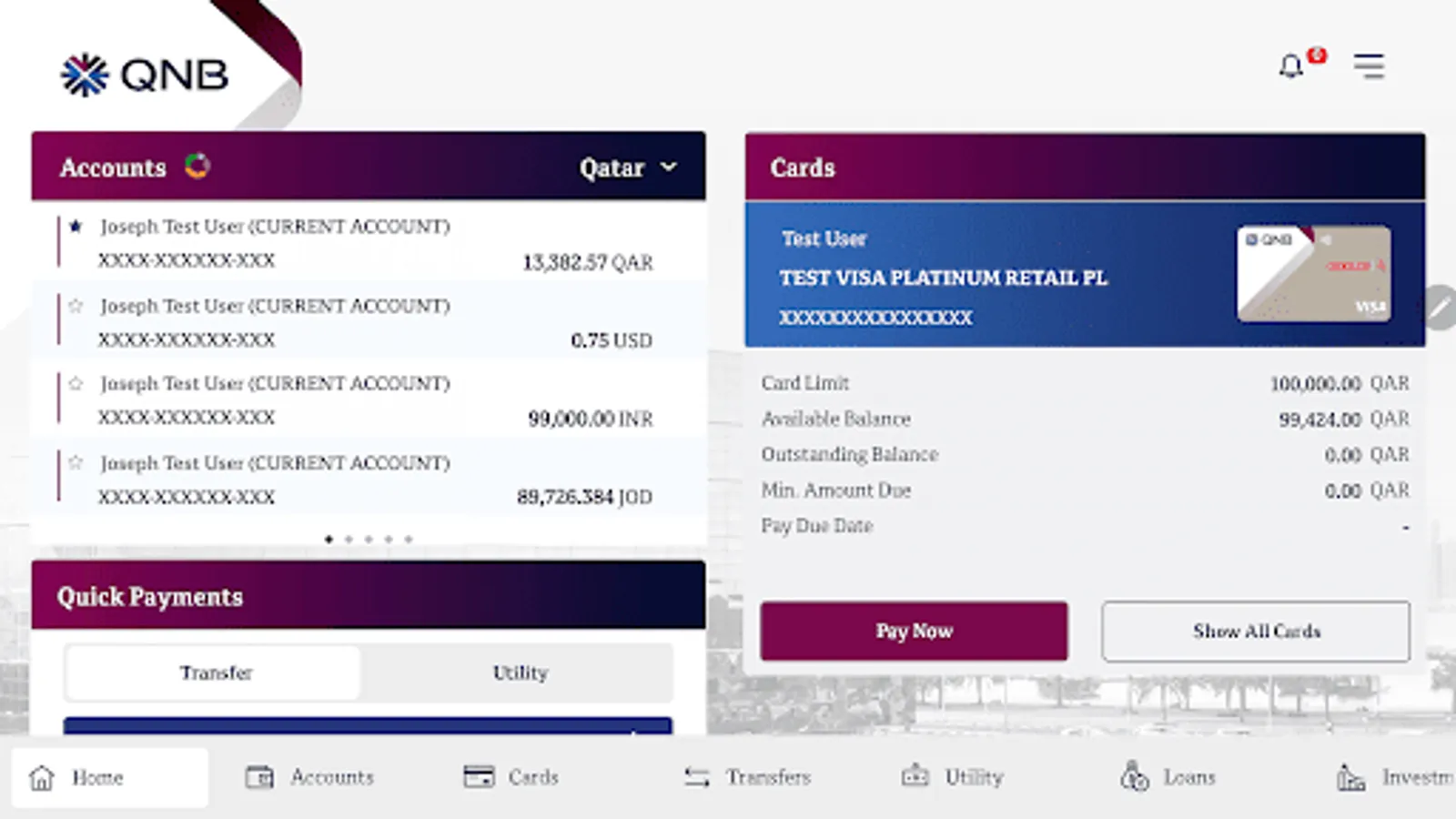 Tomorrow’s digital banking, today. A seamless and innovative banking experience with QNB. Customize how you want to display your accounts, manage your credit cards and quickly pay your most common payments from the dashboard. Transfers funds internationally with competitive exchange rates and make same day transfers (including Ripple and Western Union etc.). Manage and pay your bills easily. Access your local & international accounts, apply for and manage your personal and vehicle loans. View our Life Rewards partners and redeem your loyalty points, view interest and forex rates. Request cheque books, and easily find ATM-s for local and foreign currency withdrawals using our ATM/Video teller, and branch locator, an apply for QNB products. Moreover, you can use contactless payments, card less ATM services, deposit cheques, register & subscribe for IPO, chat online with one of QNB agents at any time if need our help.