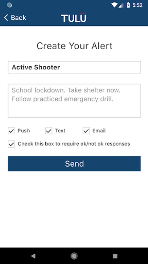 Tulu Pro is an emergency notification and accountability mobile app. TULU provides a fast and easy way for first responders to send emergency alerts and account for everyone in the organization. TULU works on iOS and Android smartphones. It’s ideal for government, corporate, education and non-profit applications. As a FirstNet Listed app, you can be confident TULU Pro is relevant to first responders, highly-secure and highly available.