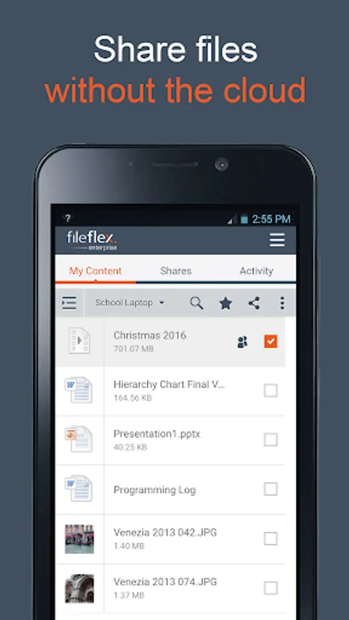 • FileFlex Enterprise is the perfect addition to your implementation of SharePoint. If your implementation is on-premises, then FileFlex will provide remote access and collaboration to your distributed workforce and allow for sharing with external users. You don’t need to migrate your SharePoint to the cloud-based version, you don’t have to add external users to your SharePoint and you don’t need to use a VPN for remote access.