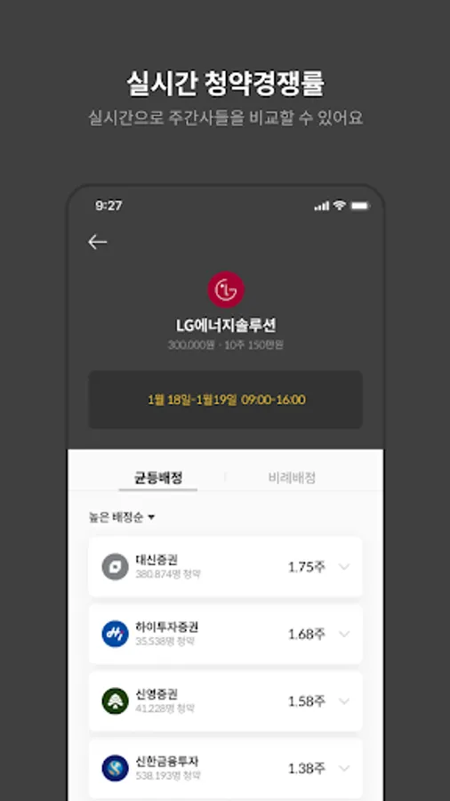 You can check the competition rate for equal allocation/proportional allocation by each securities company in real time and make a subscription to an advantageous securities company.