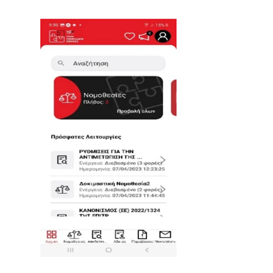 TÜV AUSTRIA Hellas, in the context of Legal Compliance, provides customized Support and Information services with the current developments and changes in the current legal framework that concerns the entire operation and business activities of an Organization.