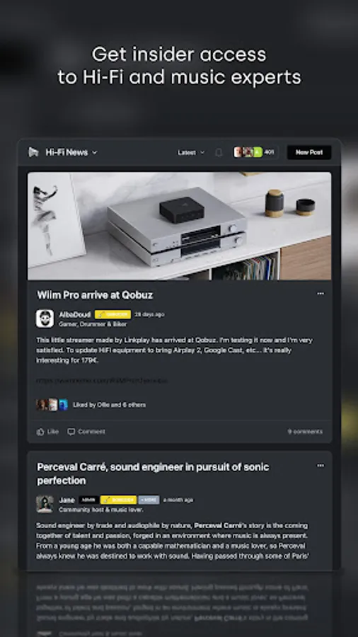NB: This app is for music lovers, audiophiles and Qobuz users, but you don't have to be a paying customer to jump in the community!