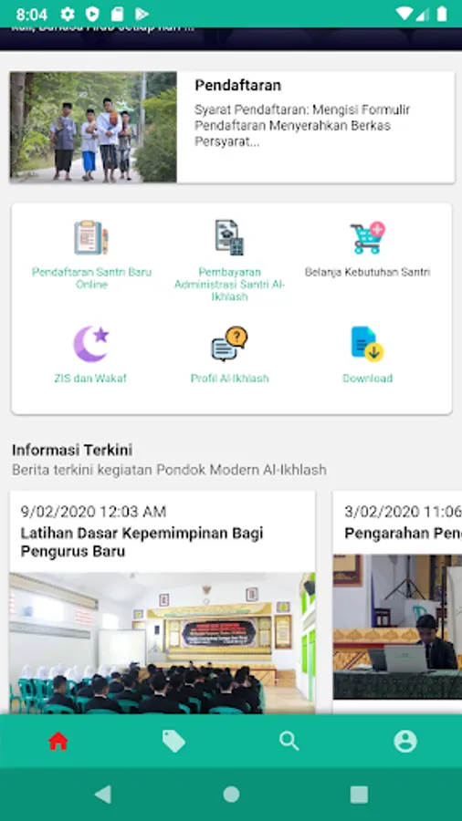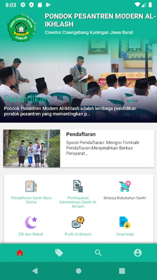 Pesantren information media in the form of an android application in which there is an information and payment menu for academic administration, Ziswaf and also shopping needs of students of al-ikhlash