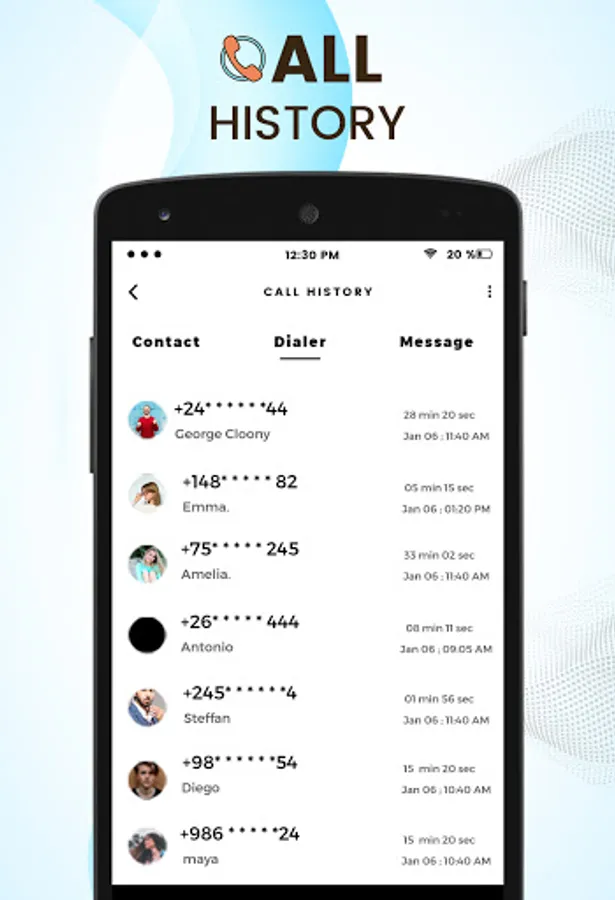 Call History Manager keep your call history forever and list them category wise for ease of access. Quick and advanced search options helps you to easily access data you are looking for.
