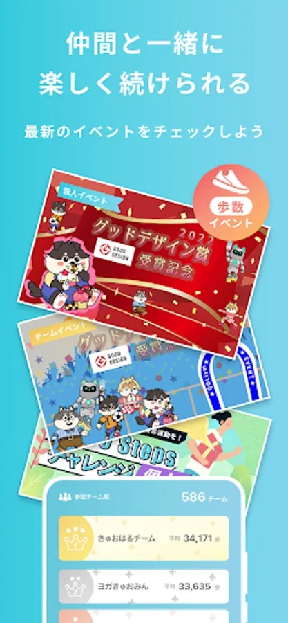 ・ Create a step count event for each group and join with your friends! You can form a team with your friends and participate, so you will be more motivated.