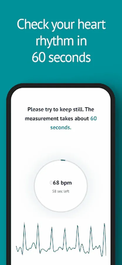 > Quick and easy: Measuring your heart rhythm and heart rate takes just 60 seconds. Place your finger on the camera of your smartphone, and put your mind at ease.