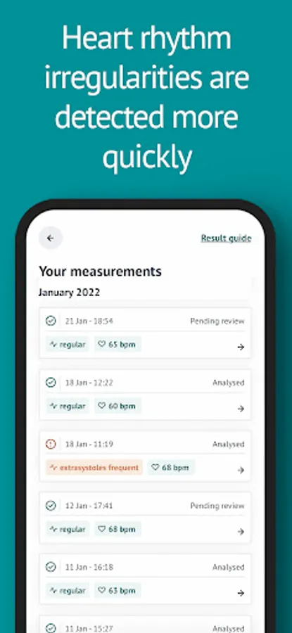 > Reports: After measuring your heart rhythm, you will receive a detailed report with clear advice.