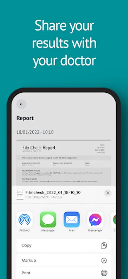 > Share your results with your doctor: You can easily share the medical report with your general practitioner or cardiologist. Please note: in America, FibriCheck can only be used under the supervision of a licensed healthcare practitioner.