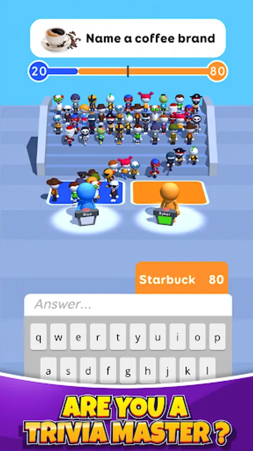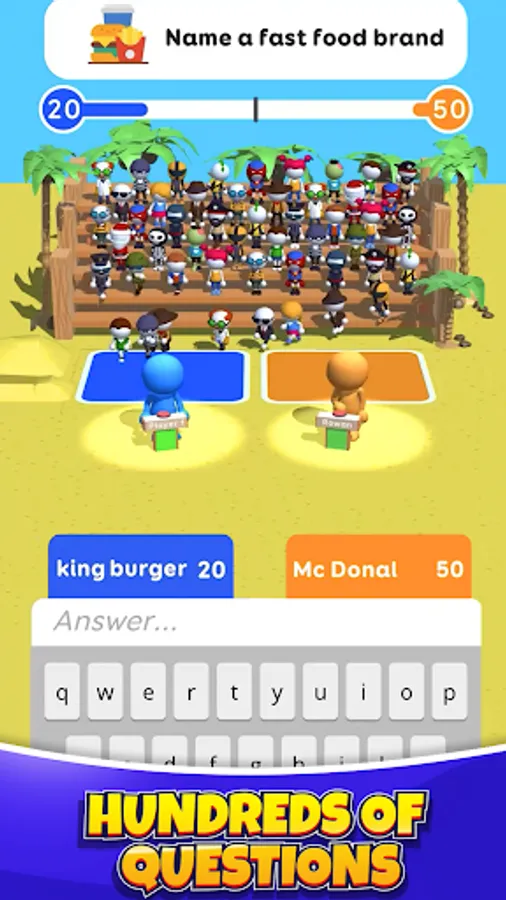 In this fun trivia games you need to guess what the other players answered to a certain question. It can be anything, so just say the first word that comes to your mind in quiz games. Then type your answer as fast as possible in typing games. Compare your reply with the answers of the rest & crack trivia in text games.