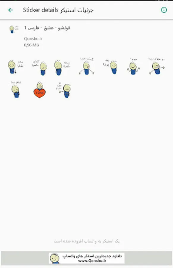 Using this app you can add "Qonshu" stickers for WhatsApp.